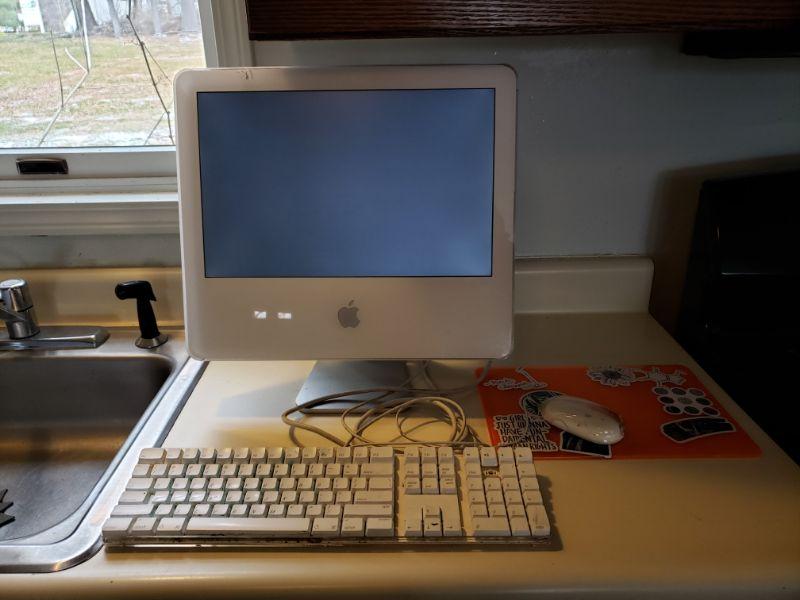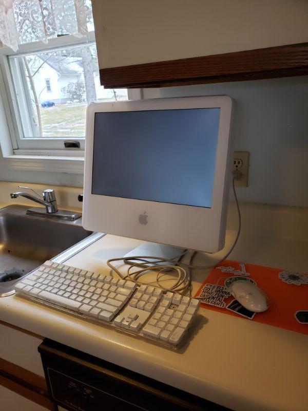 2005 Apple iMac A1058 17" Desktop. Powers on, untested beyond that.. Keyboard is missing a key. Lot# 0042