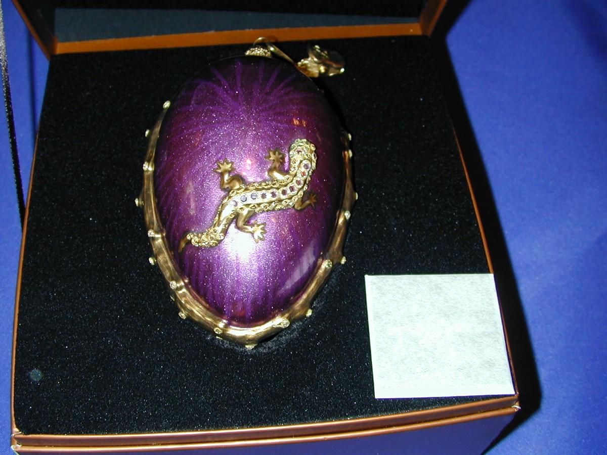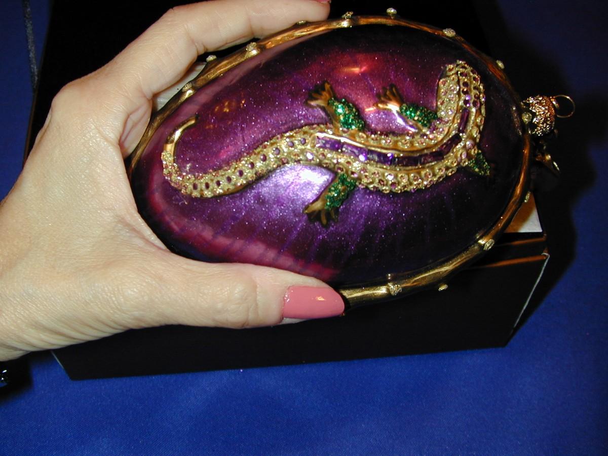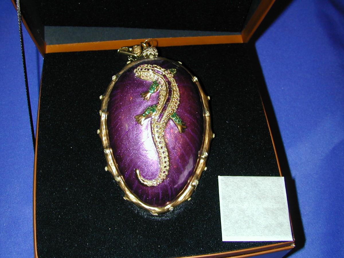 2004 Jay Strongwater Glass Purple Jeweled Salamander Egg Ornament In Box Lot 334