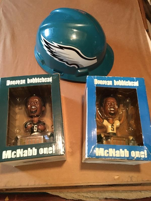 2004 Philadelphia Eagles McNabb Bobble Heads and Hardhat Lot