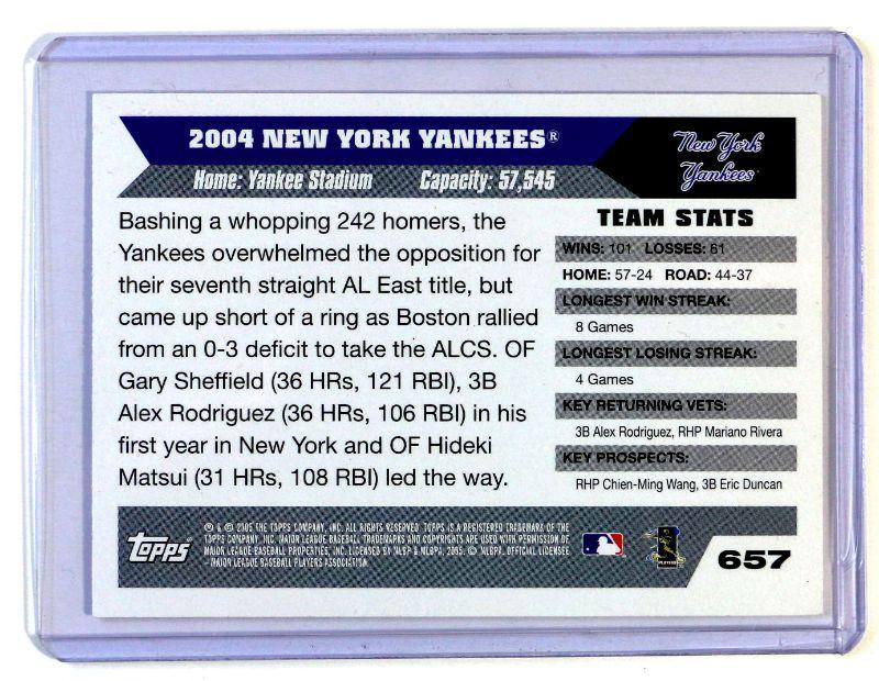 2004 TOPPS #657 NEW YORK YANKEES BASEBALL CARD - MINT