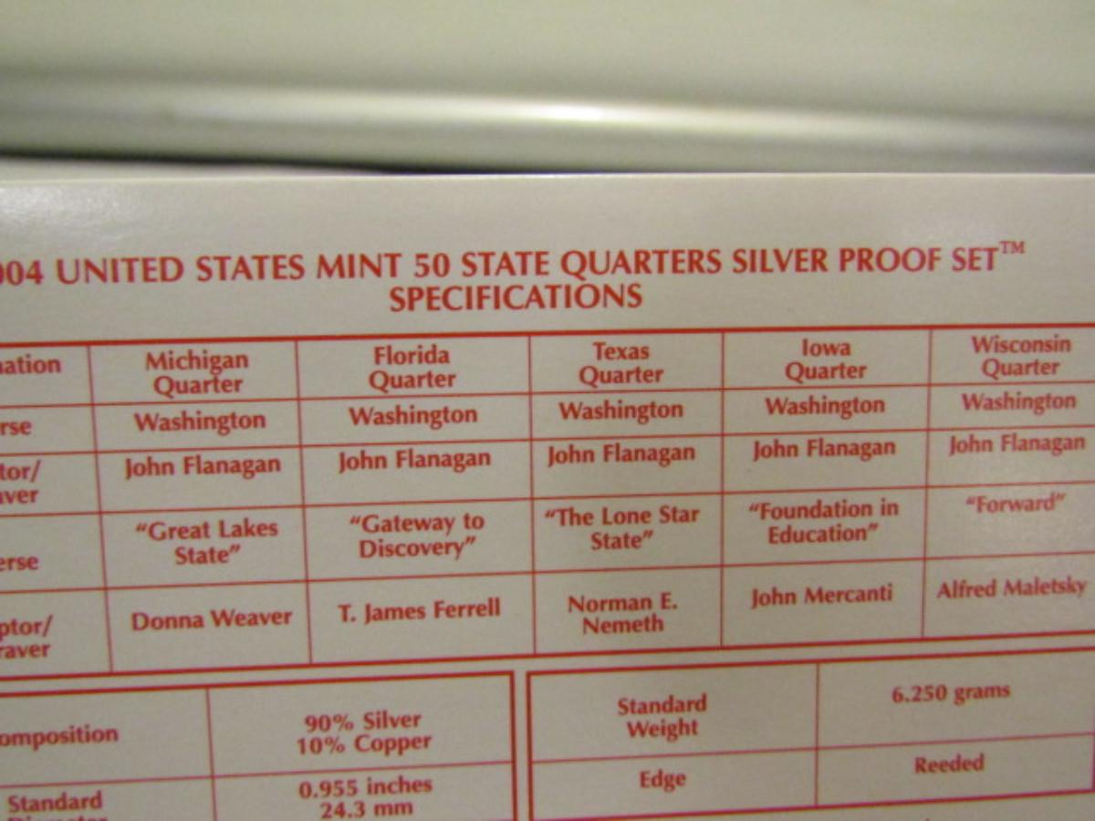 2004 US Mint State Quarters Silver Proof Set- 5 State Quarters. Choice B. Please see all pictures for description of sterling silver content.
