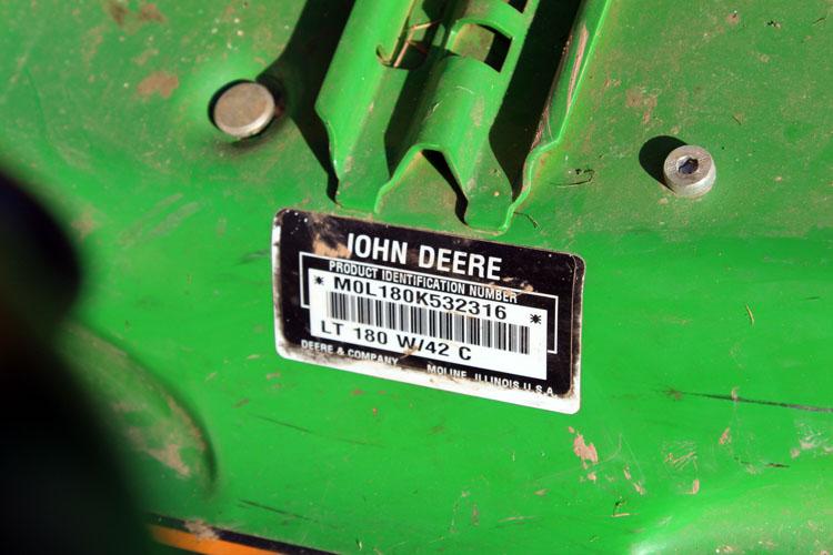 2005 John Deere LT180 riding lawn mower, 580 hours