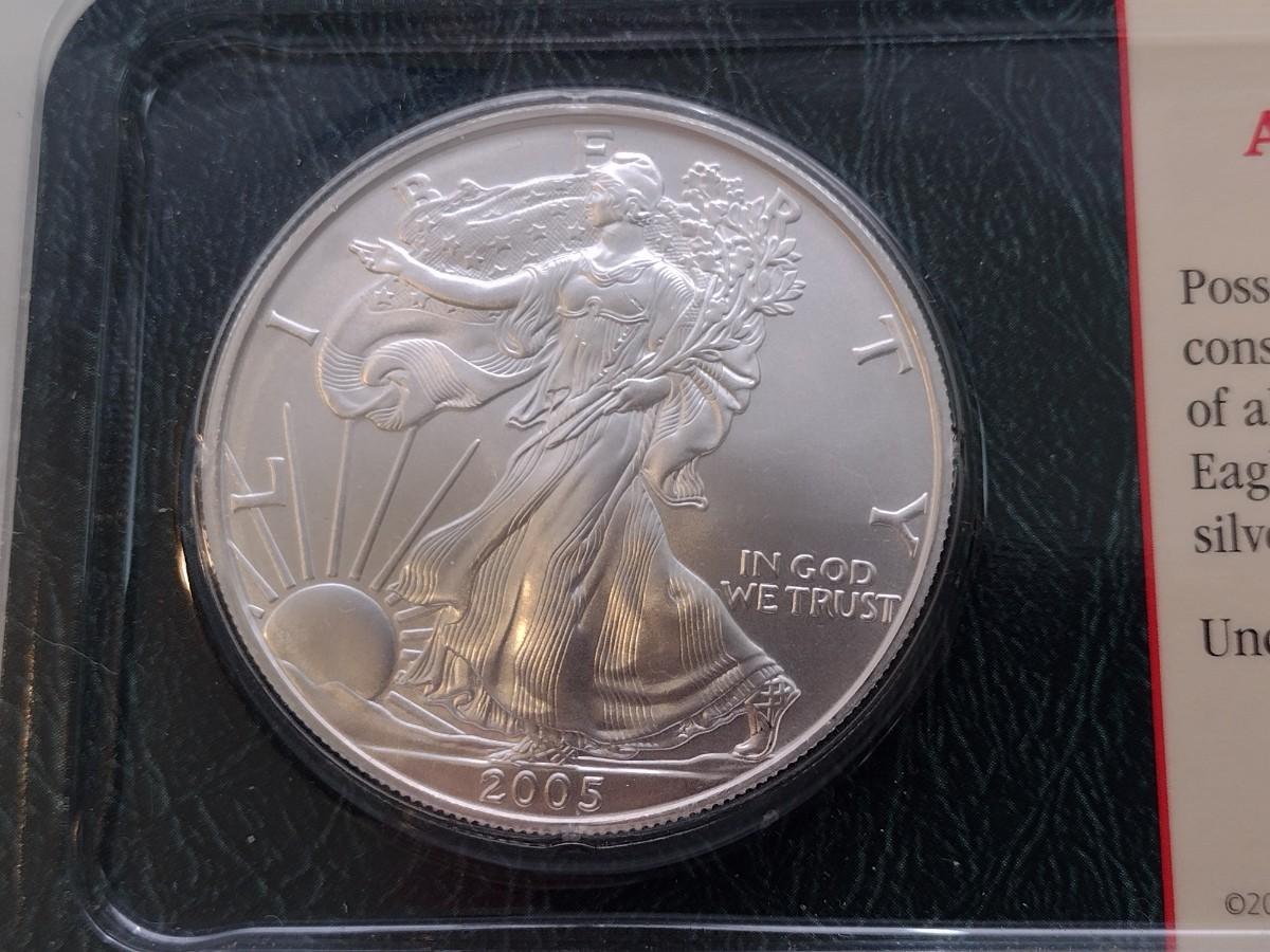2005 Silver Uncirculated American Eagle $1 Coin in Littleton Co. Sealed Press Package (#47)