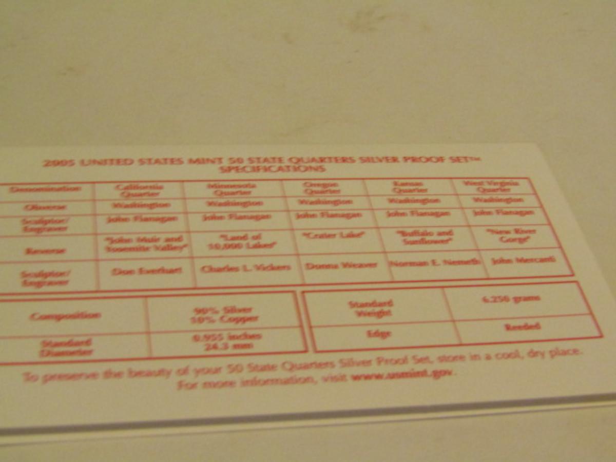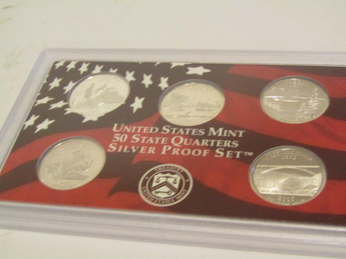 2005 US Mint State Quarters Silver Proof Set- 5 State Quarters. Choice B. Please see all pictures for description of sterling silver content.
