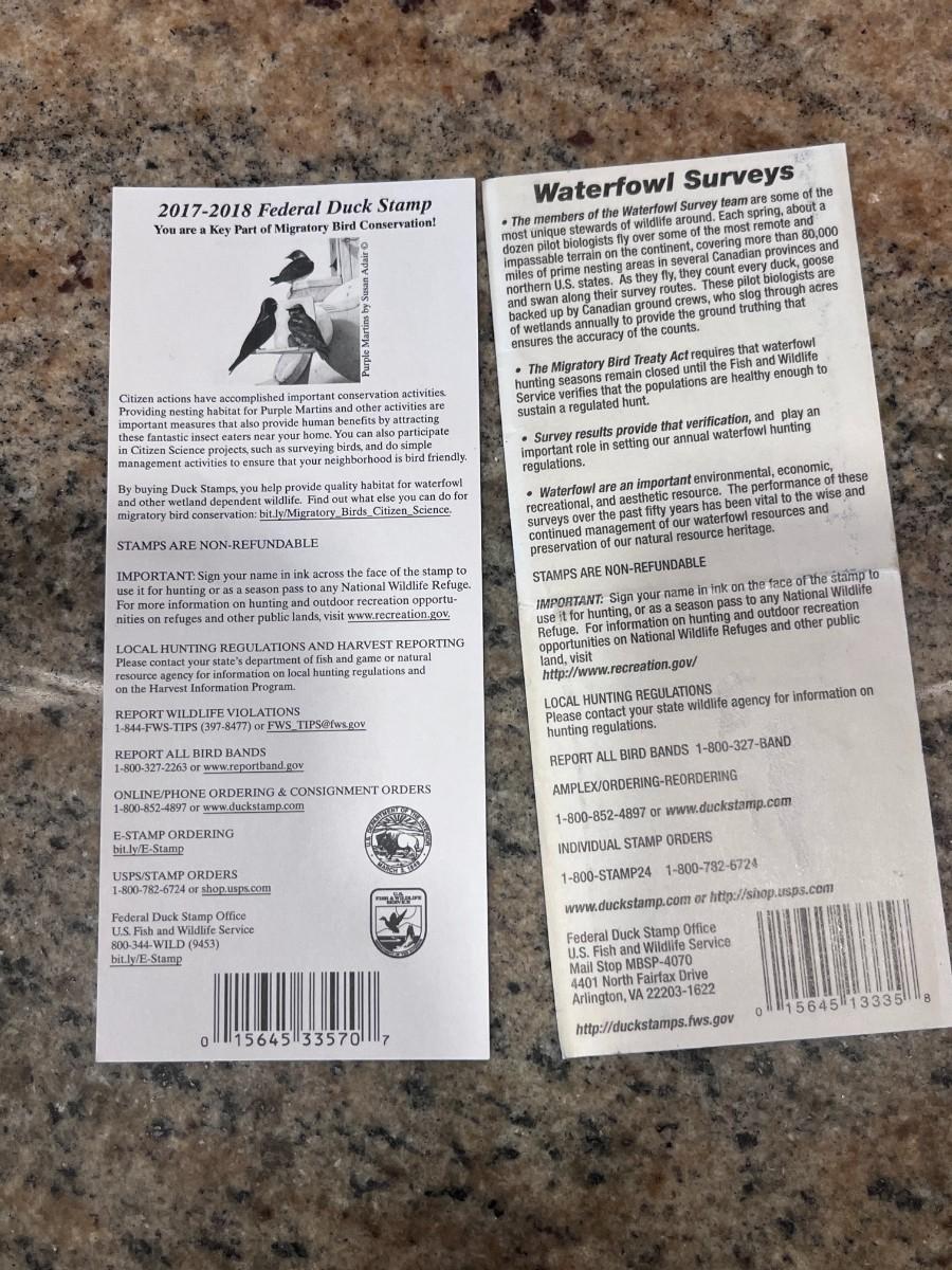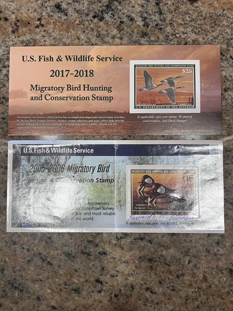 2005-2006 & 2017-2018 US FISH & WILDLIFE MIGRATORY BIRD HUNTING AND CONSERVATION STAMPS