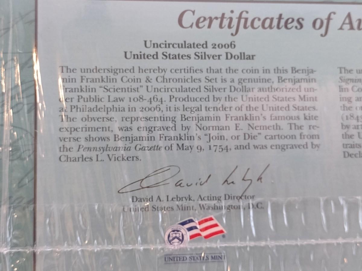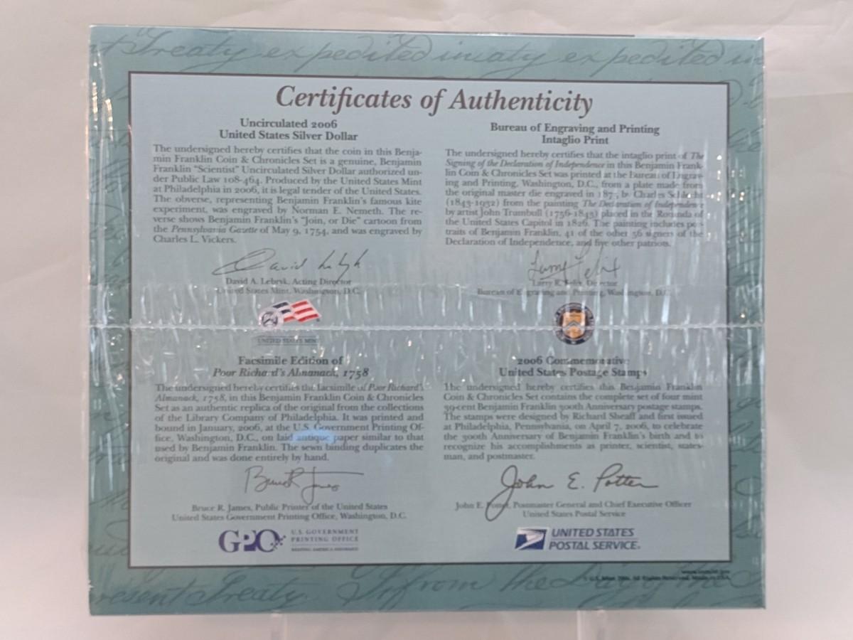 2006 Benjamin Franklin Coin and Chronicles Set Silver Dollar Uncirculated U.S. Mint Sealed Packet (#70)