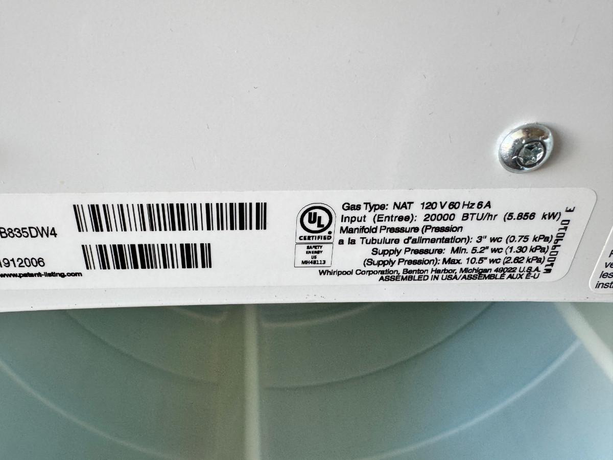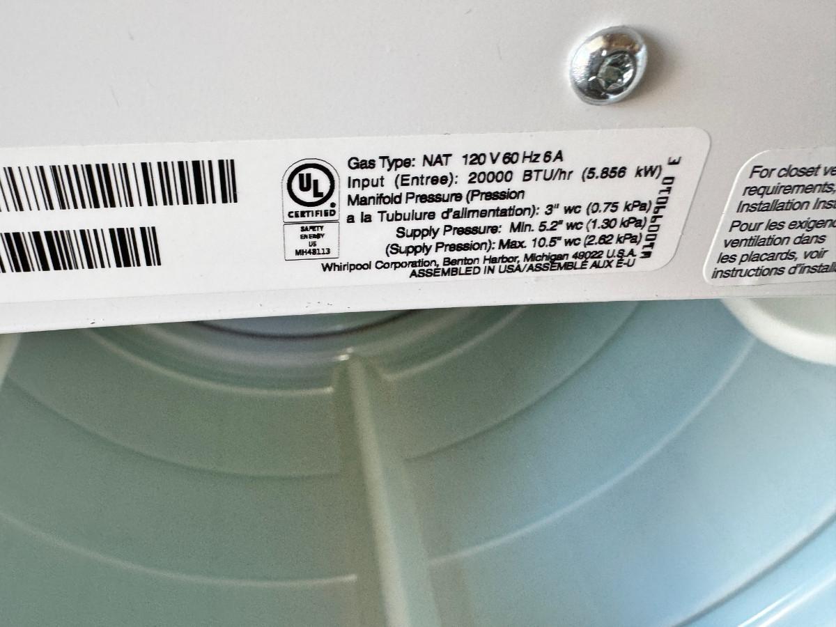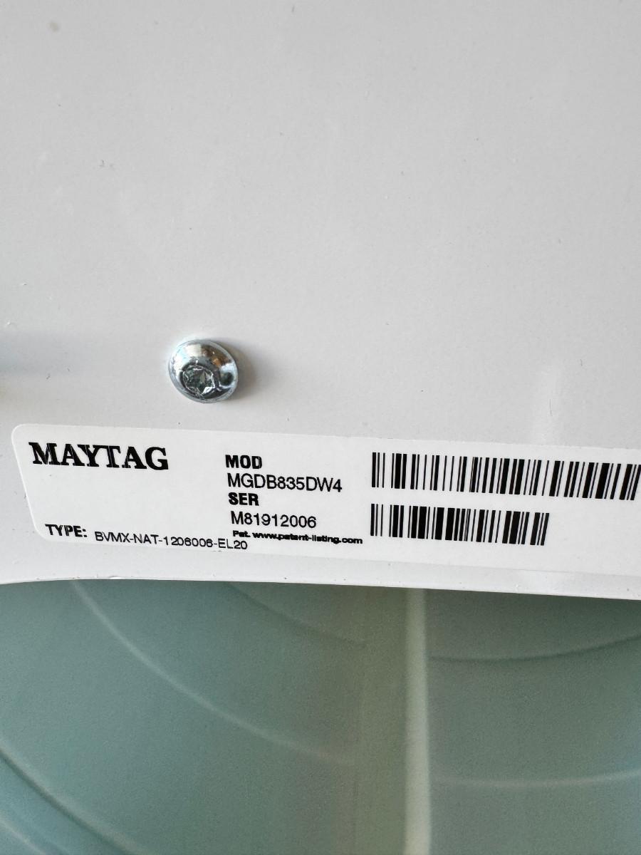 Lightly used, tested working natural gas dryer Model Number MGDB835Dw4 Serial number M81912006.