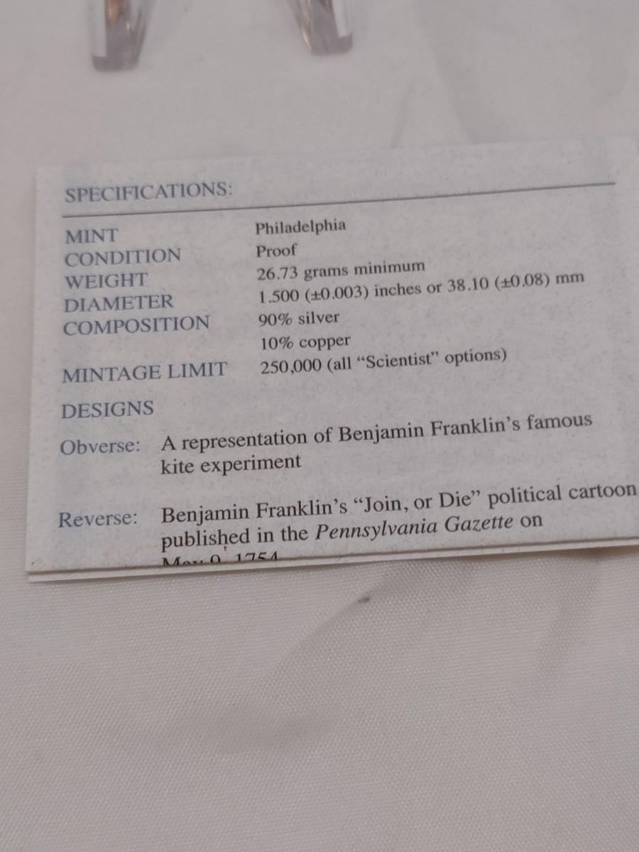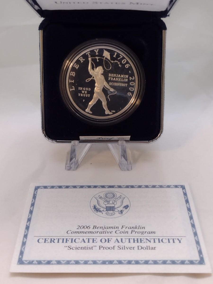 2006 P U.S. Benjiman Franklin 'Scientist' Commemorative Proof Silver $1 Coin (#186)