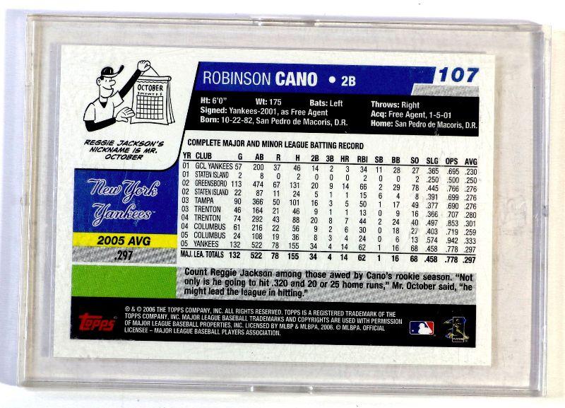 2006 TOPPS #107 ROBINSON CANO BASEBALL CARD NEW YORK YANKEES OPENING DAY