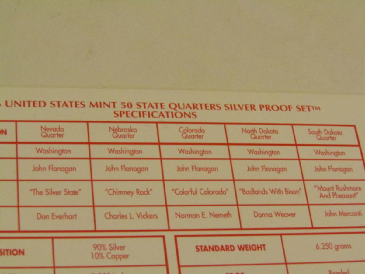 2006 US Mint State Quarters Silver Proof Set- 5 State Quarters. Choice B. Please see all pictures for description of sterling silver content.