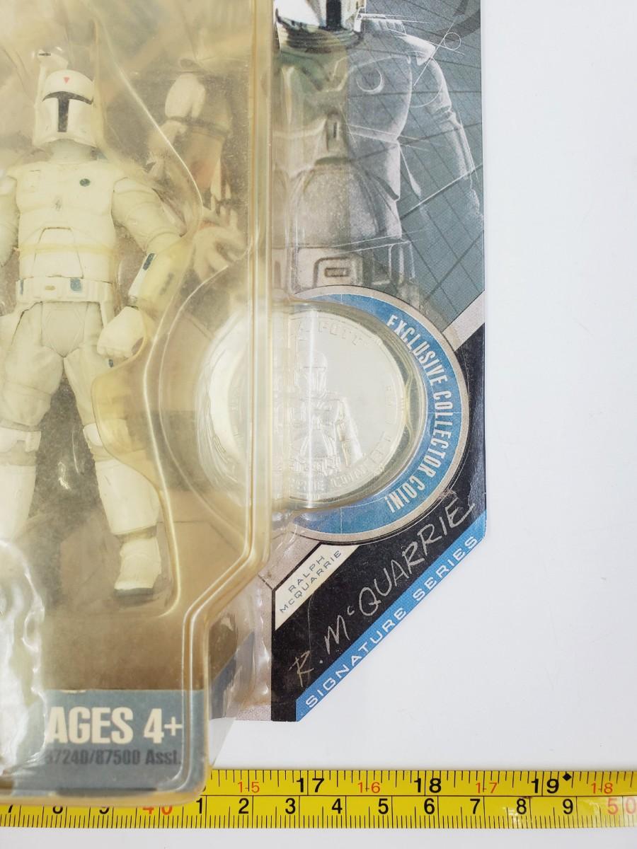 R.M Quarrie signature series 2007 Concept Boba Fett with exclusive collector's coin. Clear plastic is disclored.