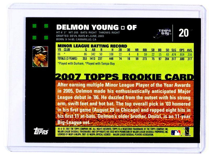 2007 TOPPS #20 DELMON YOUNG RC ROOKIE BASEBALL CARD - MINT