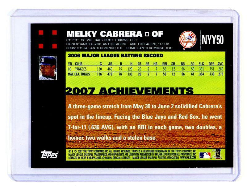 2007 TOPPS #NYY50 MELKY CABRERA NY Yankees Limited Edition BASEBALL CARD - MINT