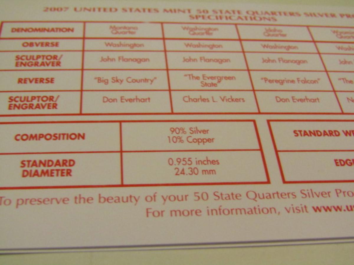 2007 US Mint State Quarters Silver Proof Set- 5 State Quarters. Choice A. Please see all pictures for description of sterling silver content.