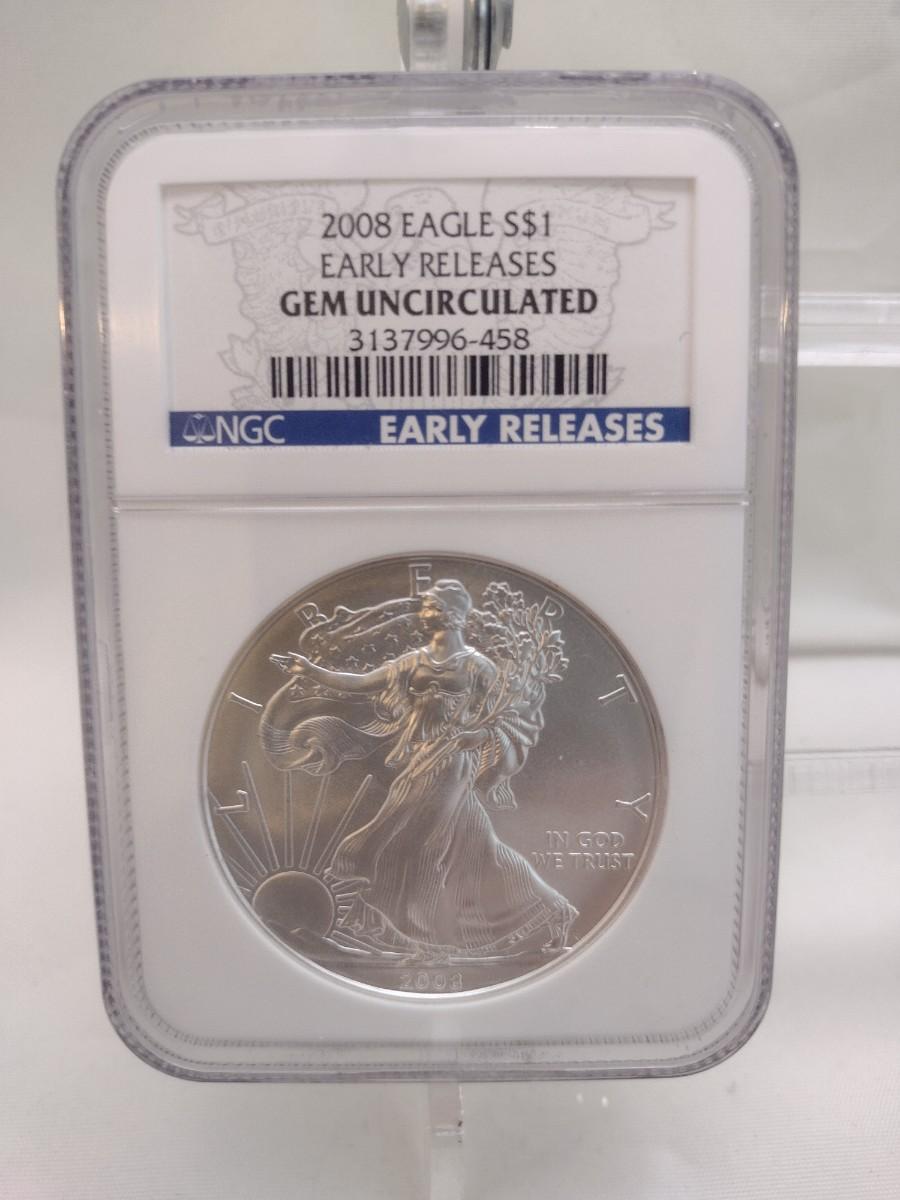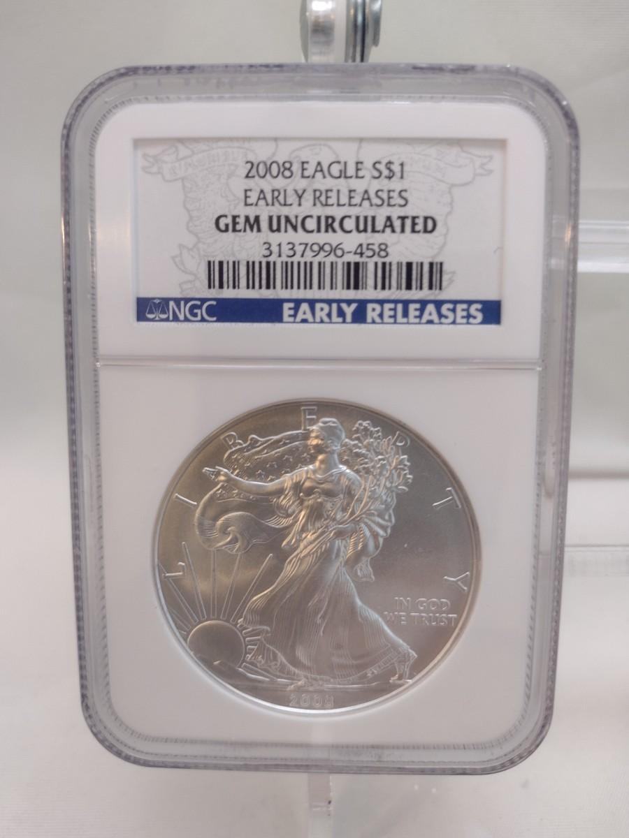 2008 American Silver Eagle $1 Coin Early Release Gem Uncirculated in NGC Sealed Press Packet (#62)