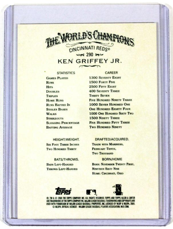 2008 Topps Allen & Ginter #290 KEN GRIFFEY Jr HOF Cincinnati Reds Baseball Card NM/MT
