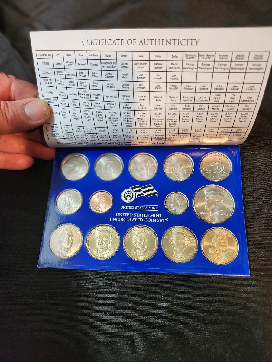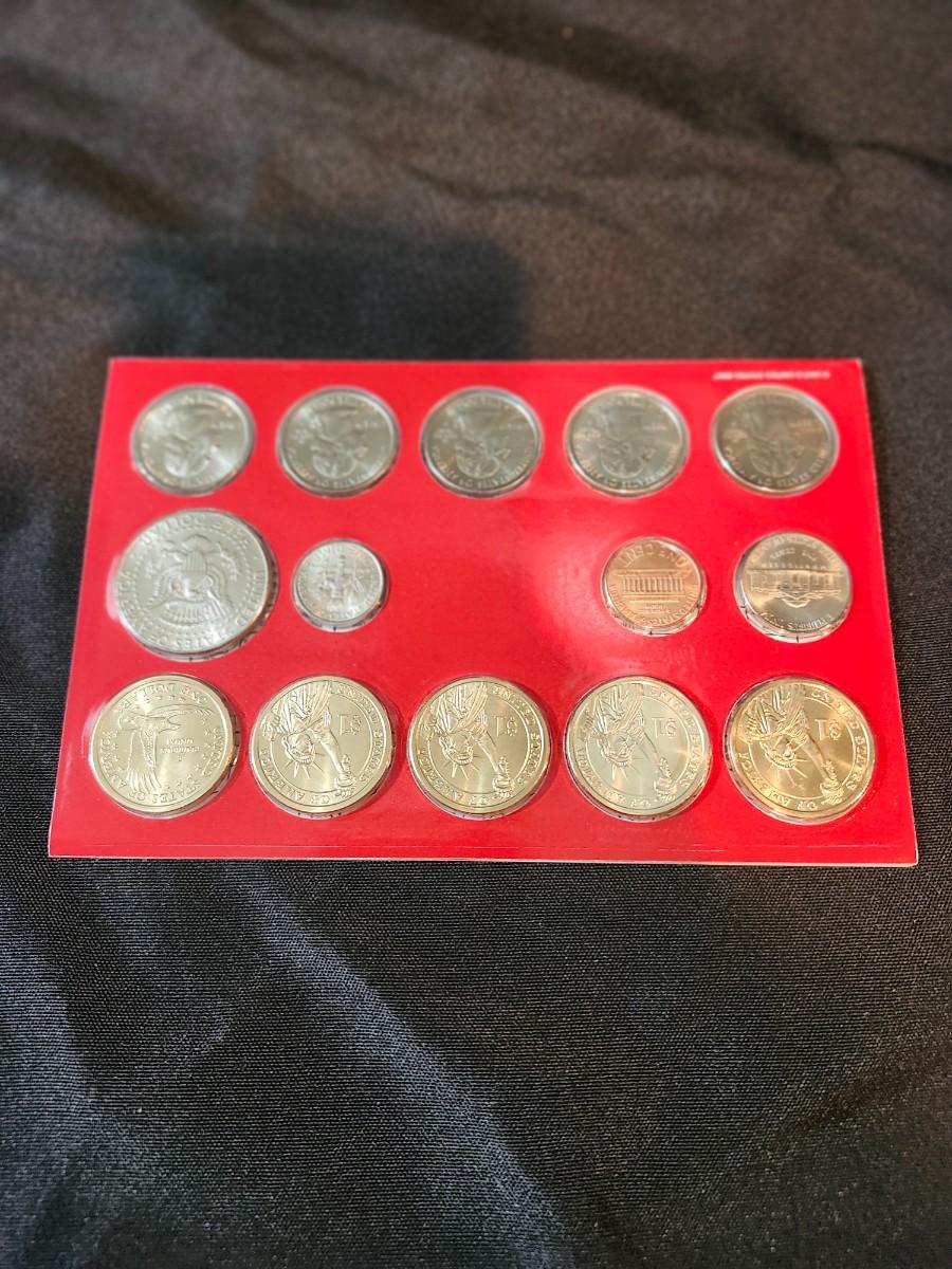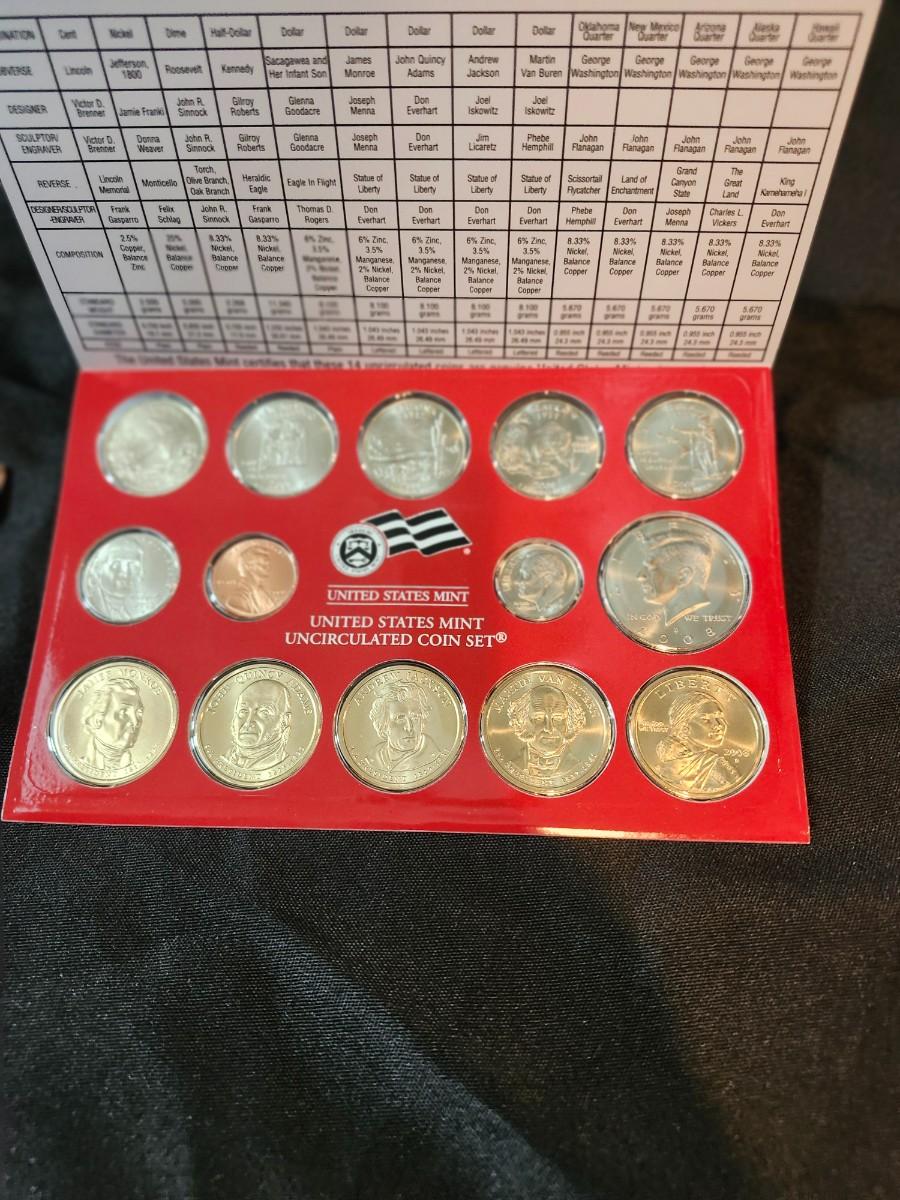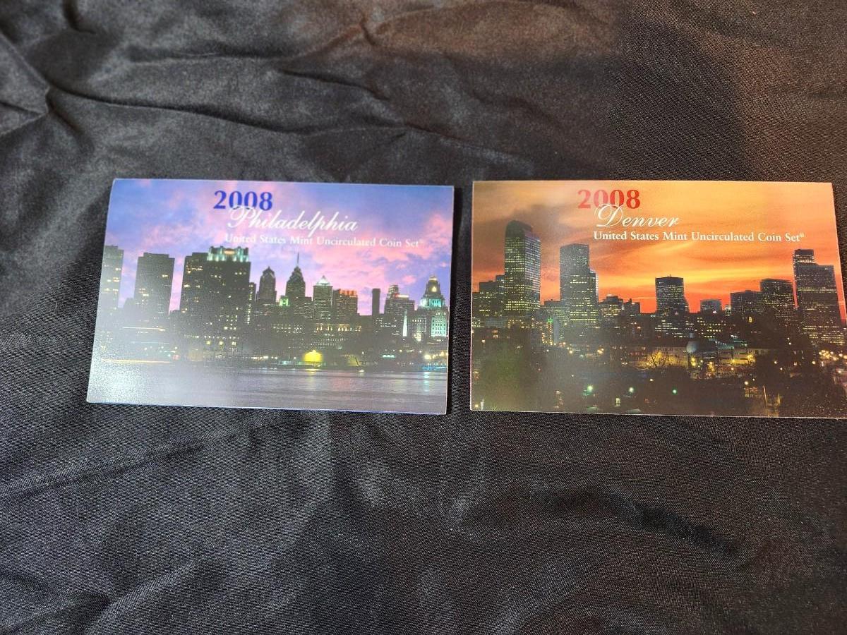 This official 2008 U.S. Mint 28 coin Uncirculated Set contains Philadelphia and Denver Mint issues of the Sacagawea dollar, Kennedy half, Roosevelt dime, Jefferson nickel & Lincoln cent, all five Statehood quarters, and all four Presidential dollars. Comes with the original U.S. Mint packaging,