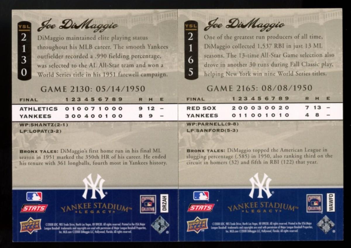 2008 UPPER DECK BASEBALL YANKEE STADIUM LEGACY JOE DIMAGGIO LOT OF 2