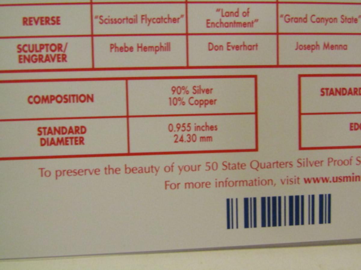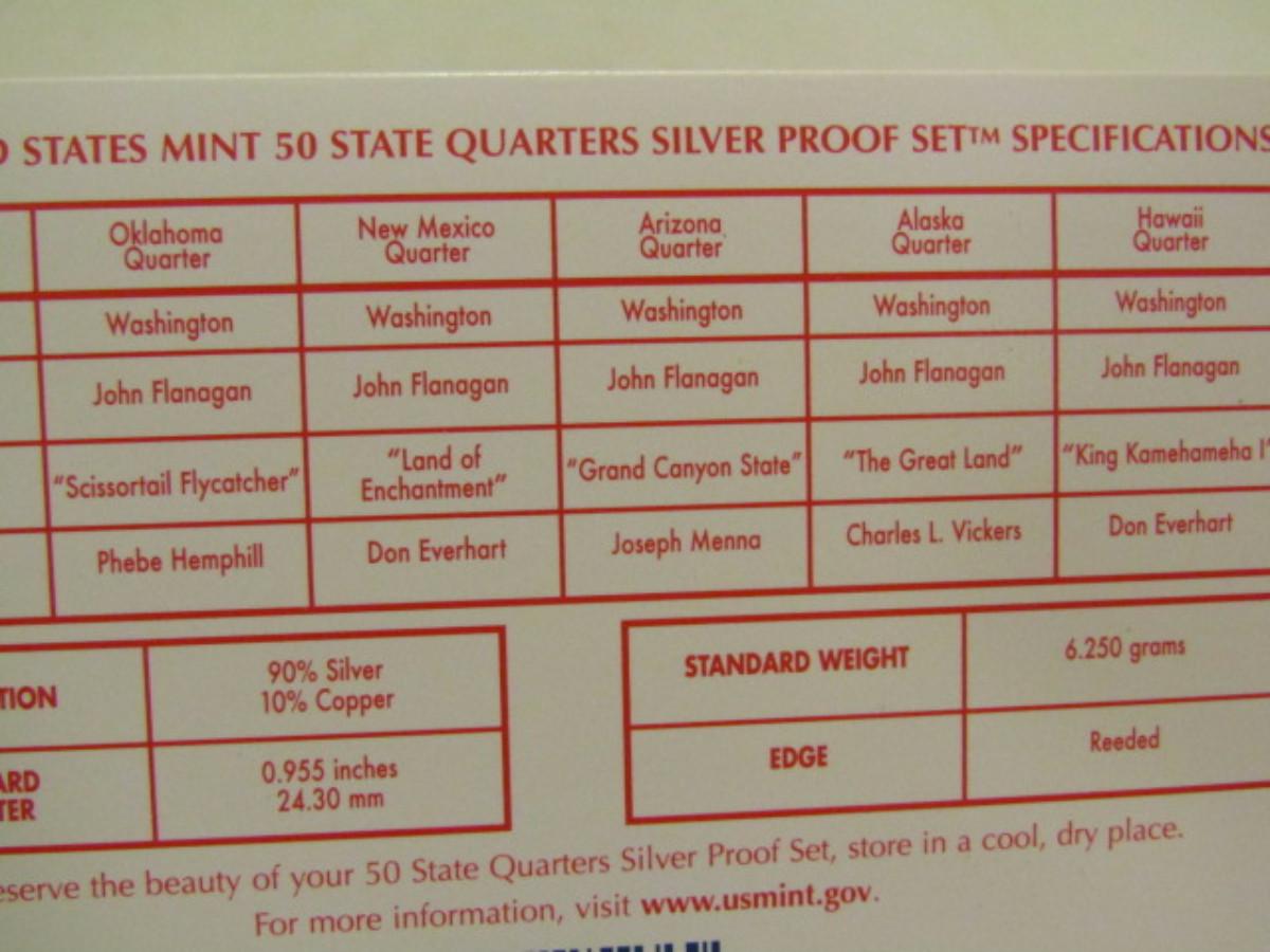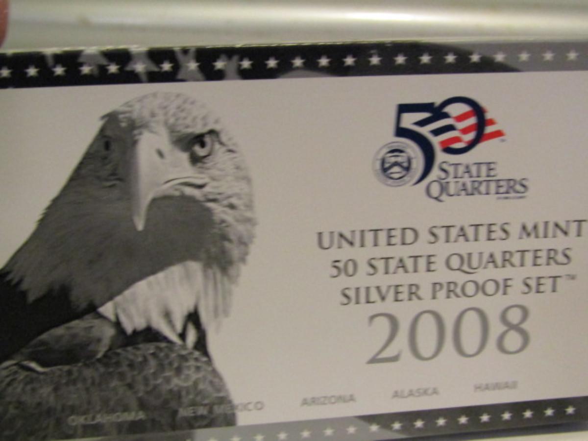 2008 US Mint State Quarters Silver Proof Set- 5 State Quarters. Please see all pictures for description of sterling silver content.