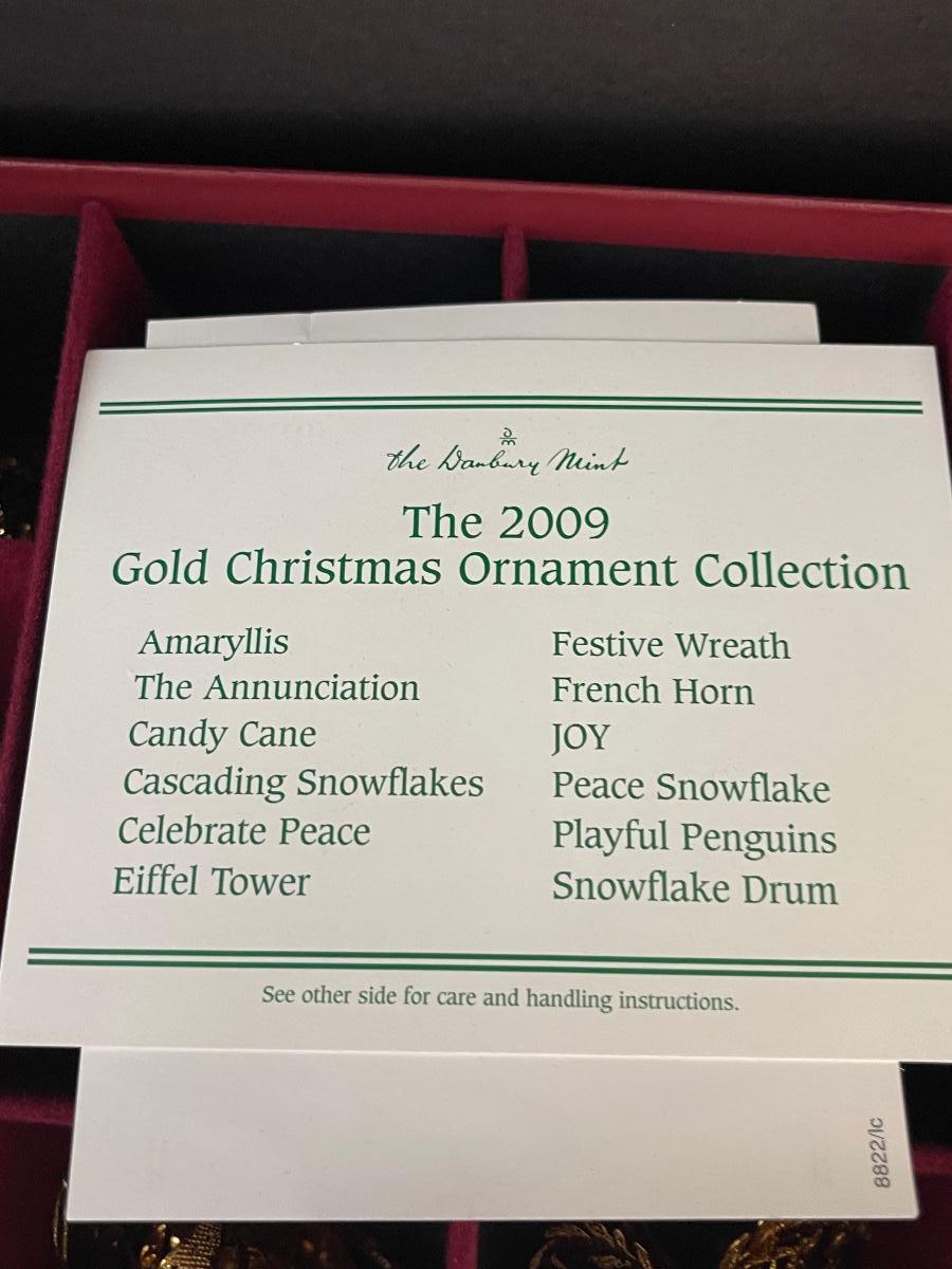 2009 Danbury Mint Gold Christmas Ornament Collection