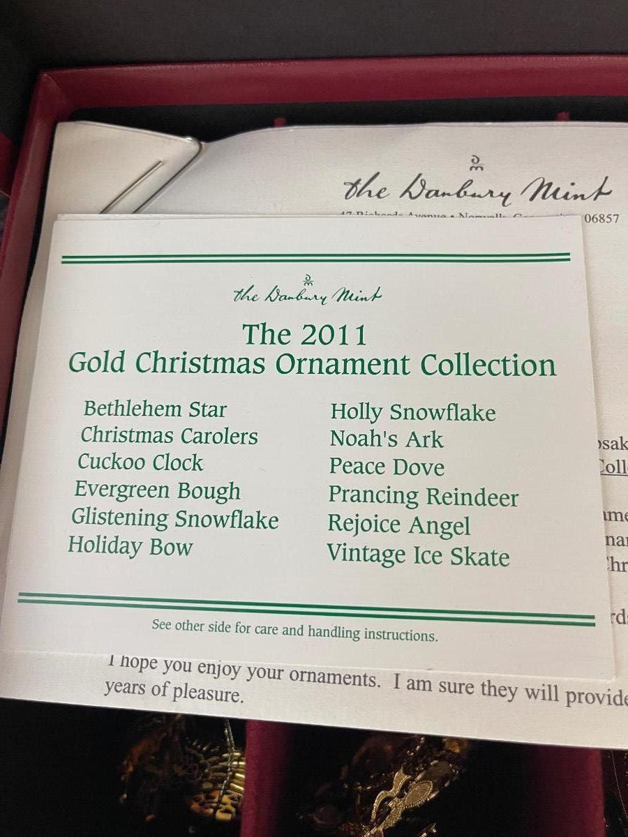 2011 Danbury Mint Gold Christmas Ornament Collection