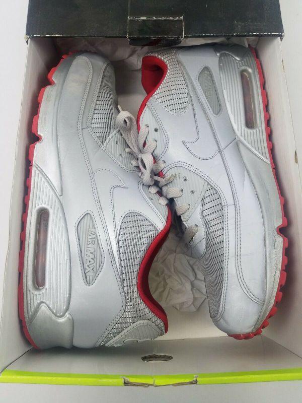 2009 Nike Air Max 90 Metallic Silver Sport Red Men's Size 11.5 w/ Original Box