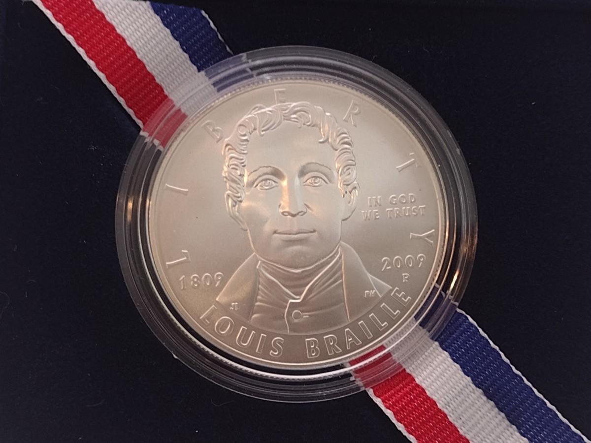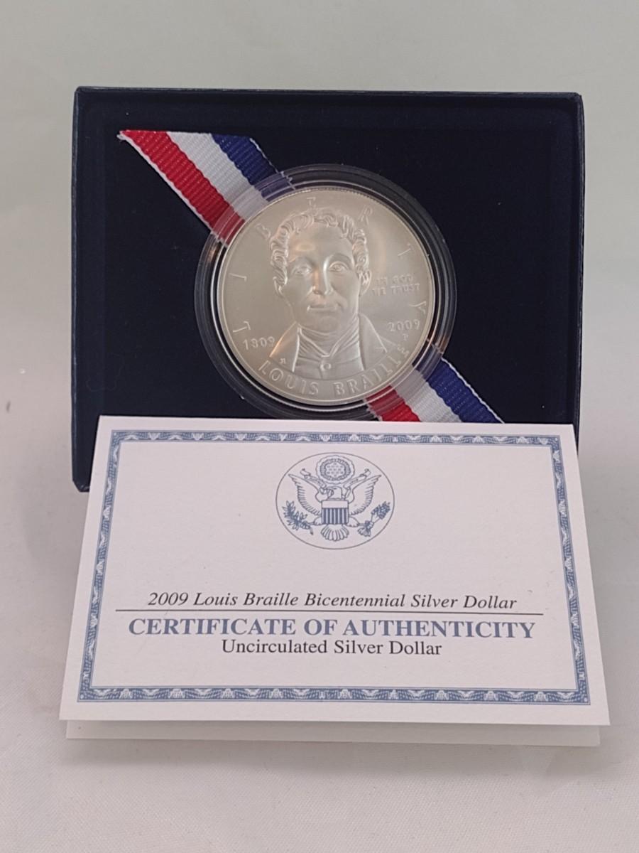 2009 U. S. Mint Louis Braille Bicentennial Uncirculated Silver Dollar Coin (#297)