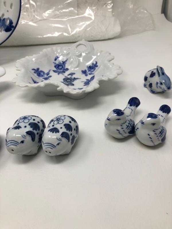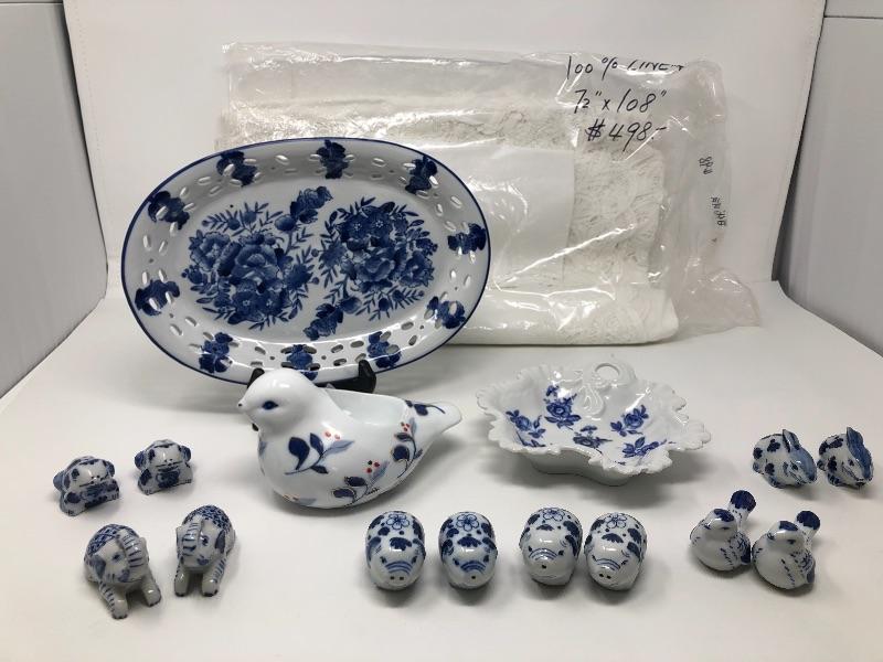 Vintage Linens, Collectible Salt and Pepper Shakers and More. Lacy linens are marked with a price of $498.00