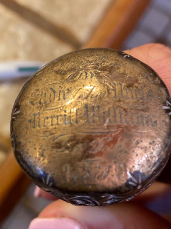 Antique Gold Filled Cane inscribed Uncle Merrill Williams Dec 5, 1870