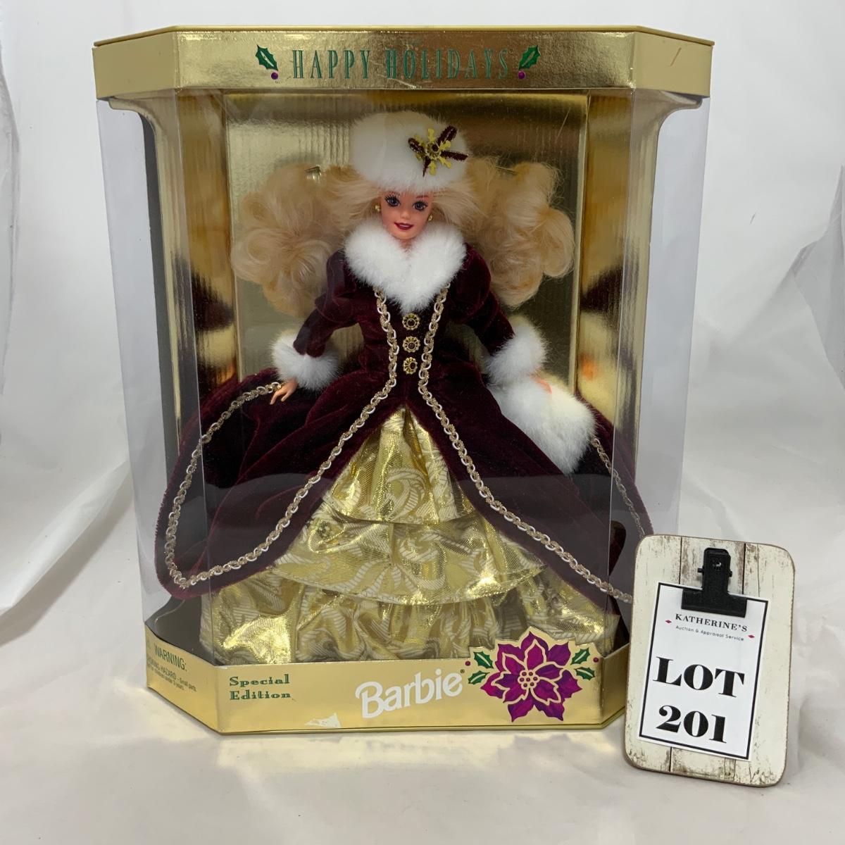 Happy Holidays Barbie, released in 1996. She’s a Special Edition, just like you! She looks grand in her Burgundy overcoat and Gold Dress - you can’t deny that! Doll is new, in box. Please see photos for details and condition. !!! Proceeds from this auction will be donated to the NEW COMMUNITY SHELTER in Green Bay, Wisconsin. Please see Sale Description to the Left for more information. !!! ::: Shipping is available on this lot. If you require shipping you must let us know at the close of the auction. We will coordinate with you after the item has been won. Shipping fees will include insurance up to or exceeding the value of all items being mailed. If you have any questions regarding this lot please contact the auctioneer either via this website, by direct email or by phone. PICK UP TIMES and other important information can be found in the TERMS and DESCRIPTION of the auction. Please take a look for pertinent information. Thanks!