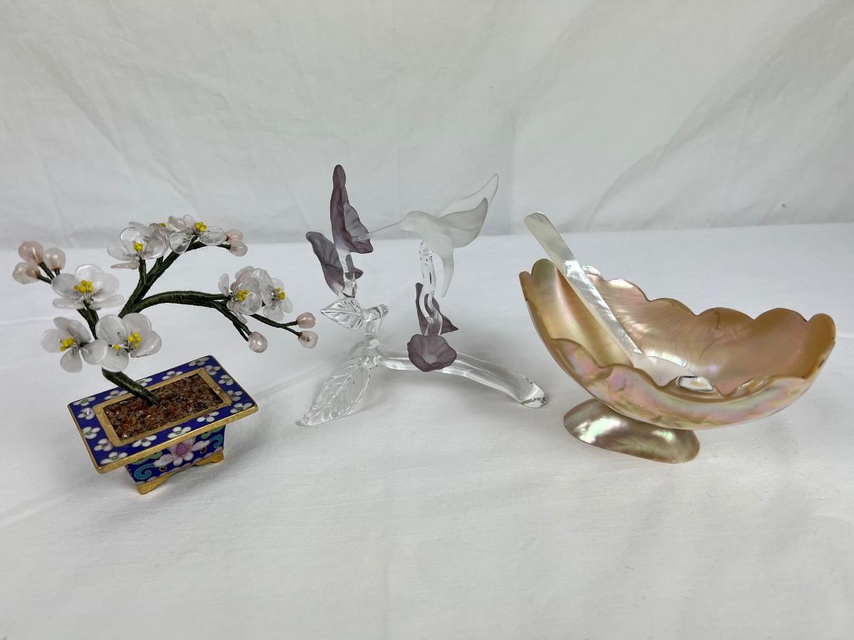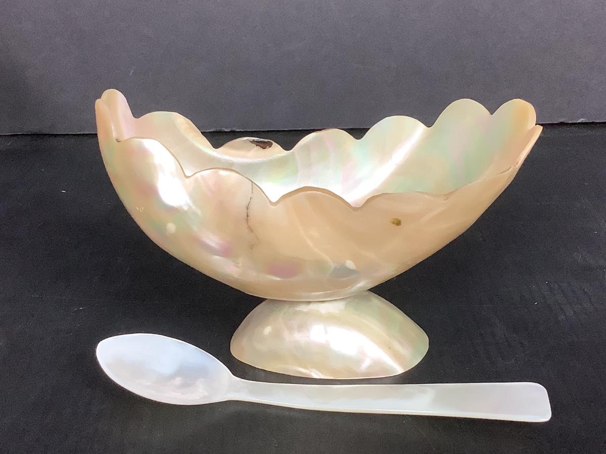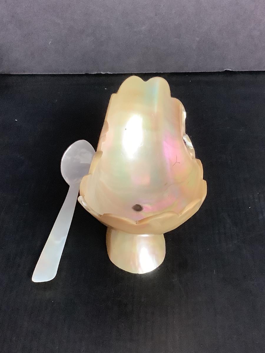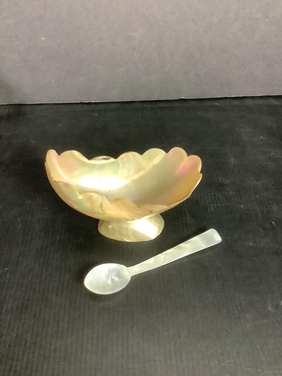 1 ) Mother of Pearl Pedestal Dish with Spoon