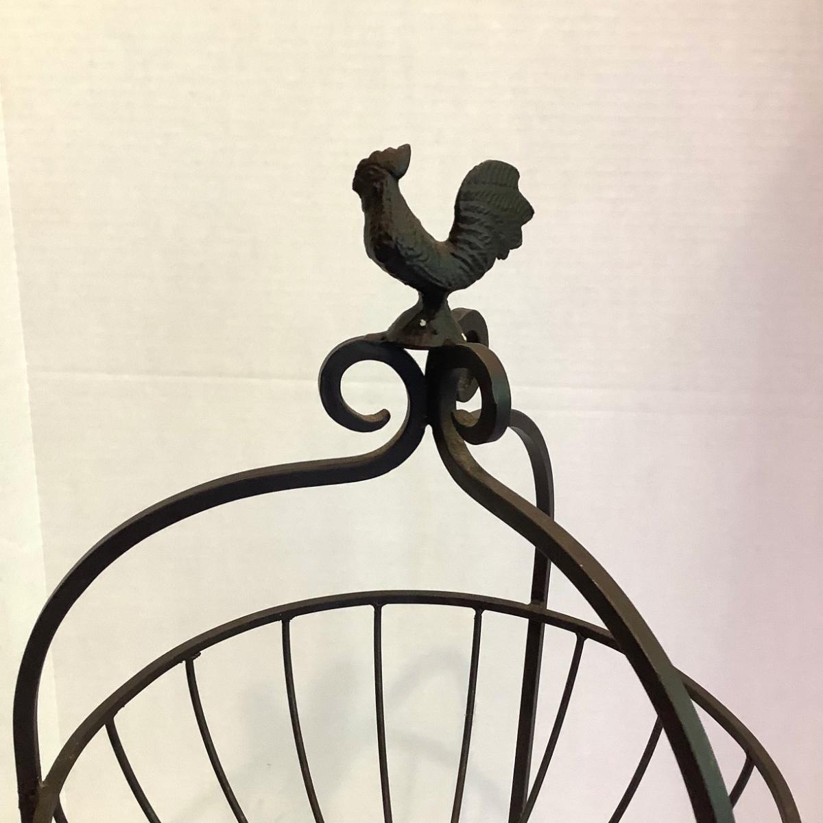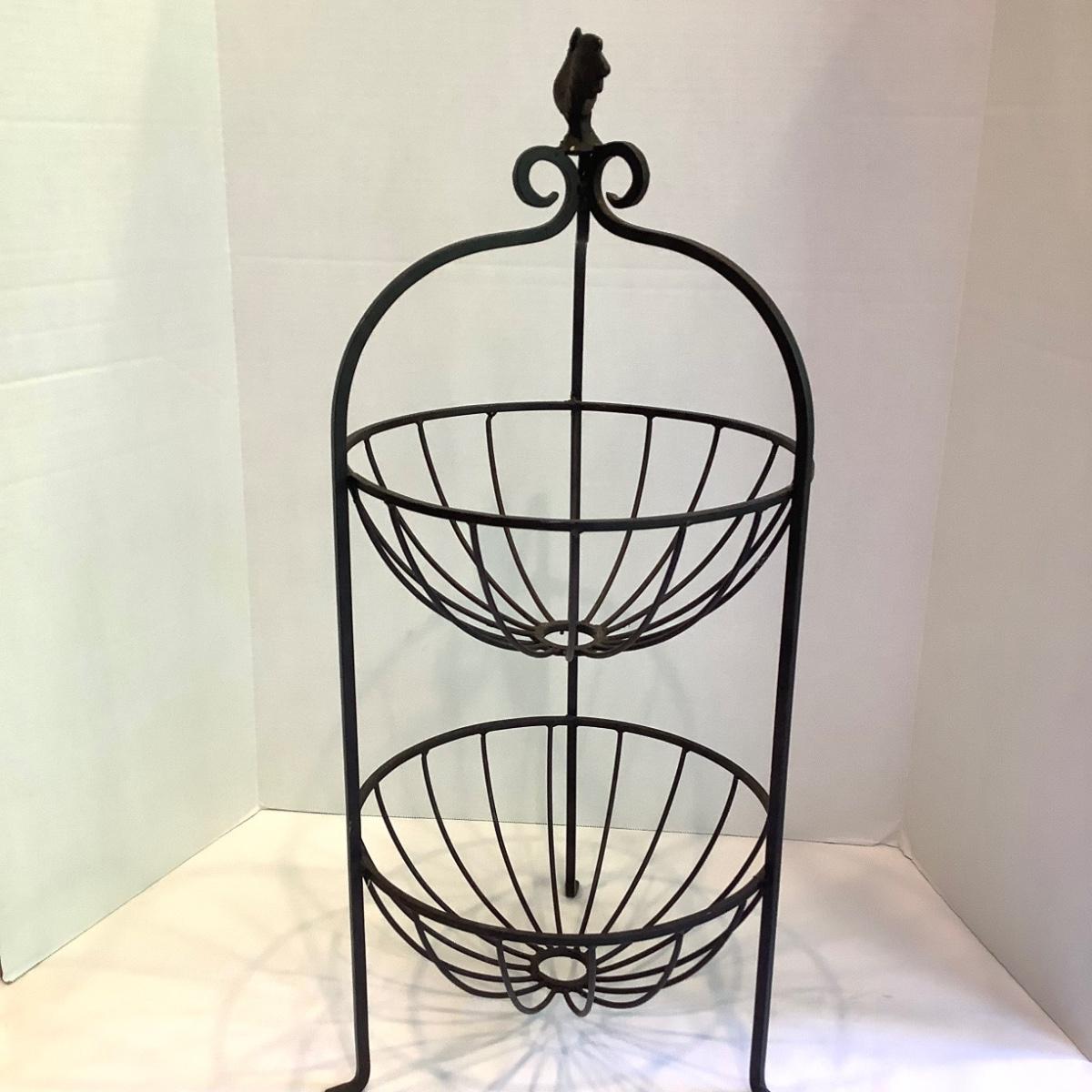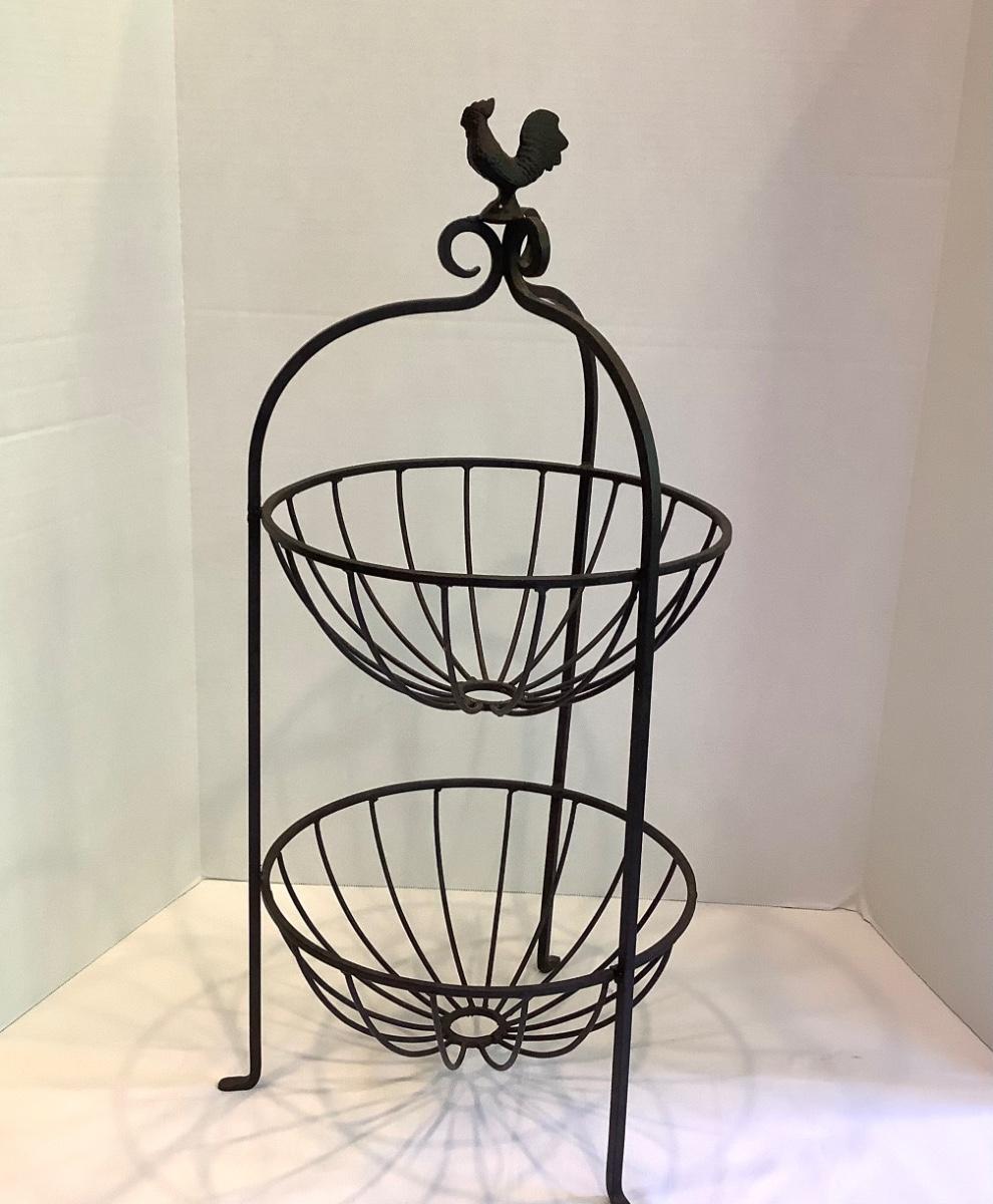 201 Two Tier Metal Fruit Basket with Rooster Finial