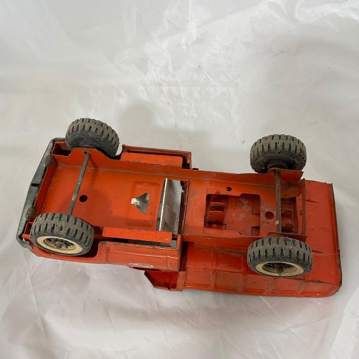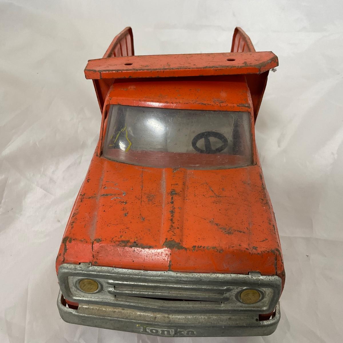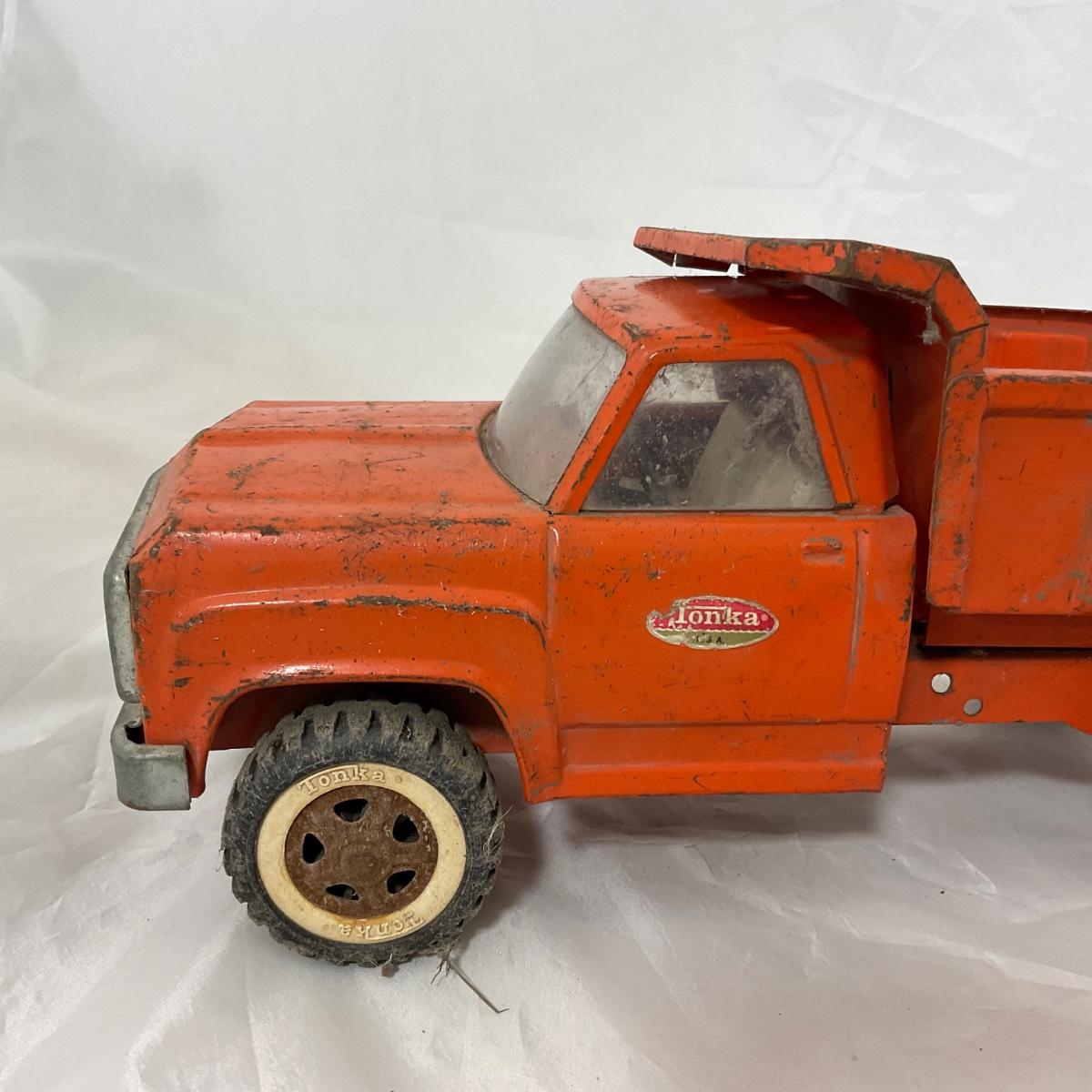One vintage 1960’s orange Tonka dump truck in well loved condition. Please see photos for details and condition. ::: Shipping is available on this lot. If you require shipping you must let us know at the close of the auction. We will coordinate with you after the item has been won. Shipping fees will include insurance up to or exceeding the value of all items being mailed. If you have any questions regarding this lot please contact the auctioneer either via this website, by direct email or by phone. PICK UP TIMES and other important information can be found in the TERMS and DESCRIPTION of the auction. Please take a look for pertinent information. Thanks!