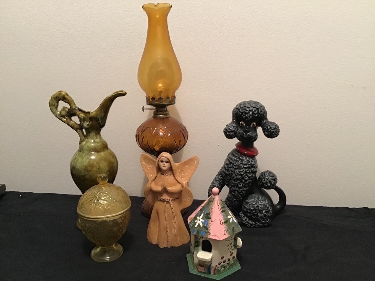 201 - Vintage Ceramic Poodle, Lamp, Pitcher, etc.