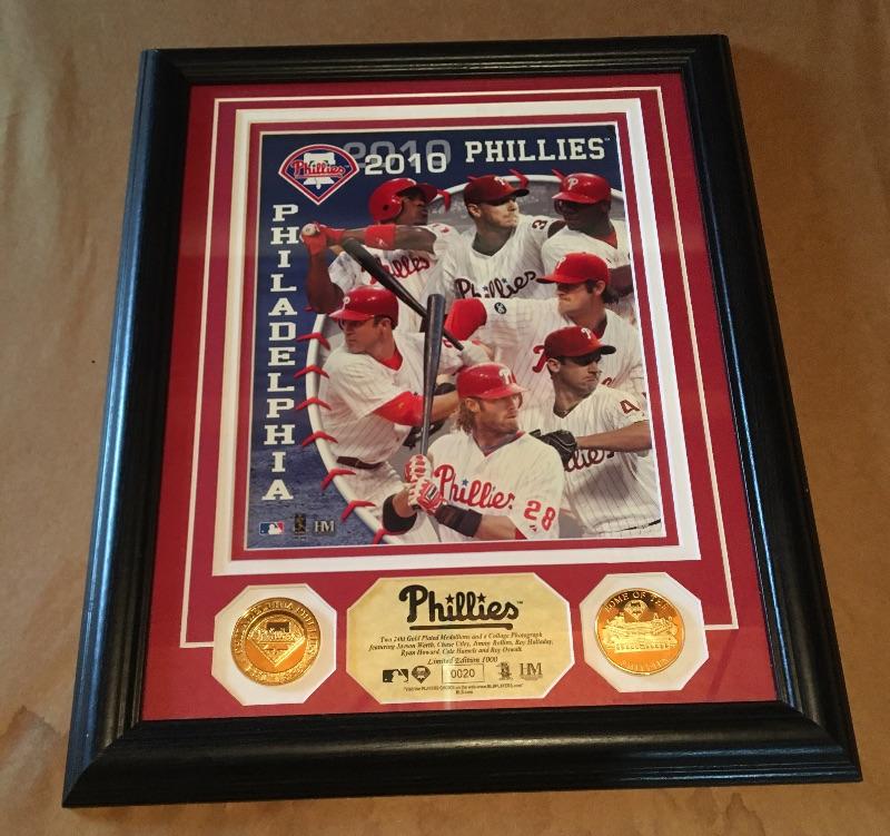 2010 Limited Edition Philadelphia Phillies Plaque and Gold Medallions 13 x 16”. LOT 7
