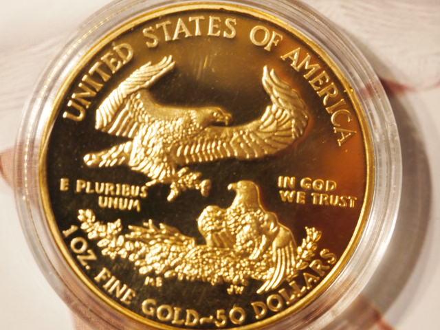 Coin Says 50 Dollar and 1 oz Fine Gold on the reverse. It is sealed in an Airtight Capsule. All the info I have on this coin is what you see. Owner says it was left to him by his Father