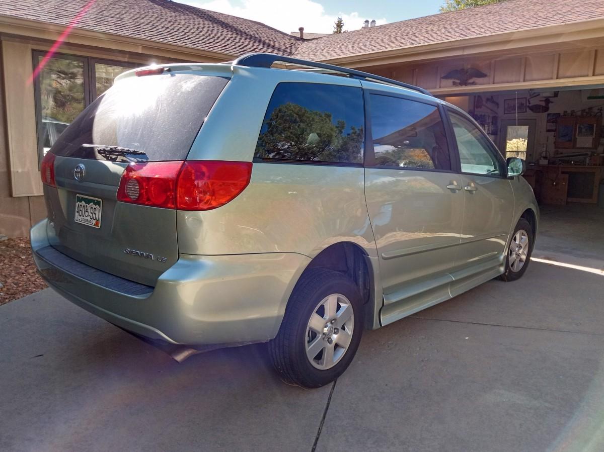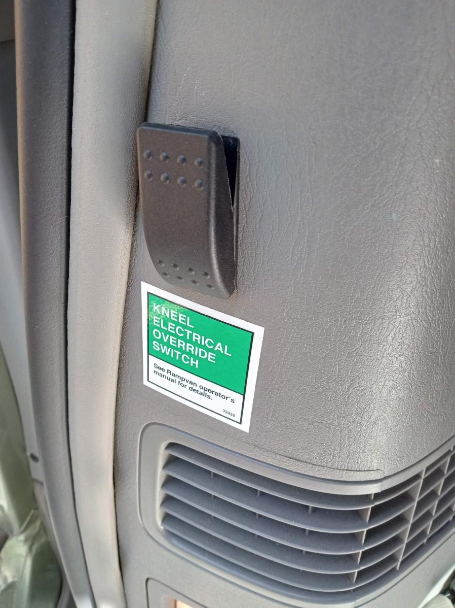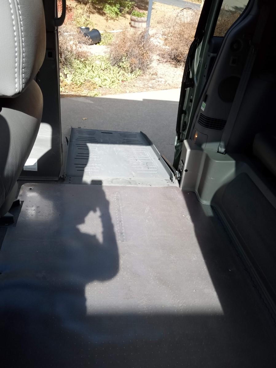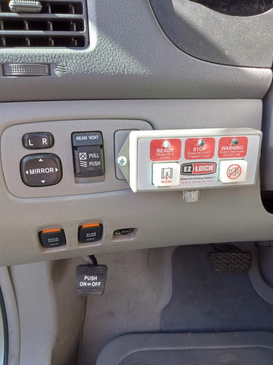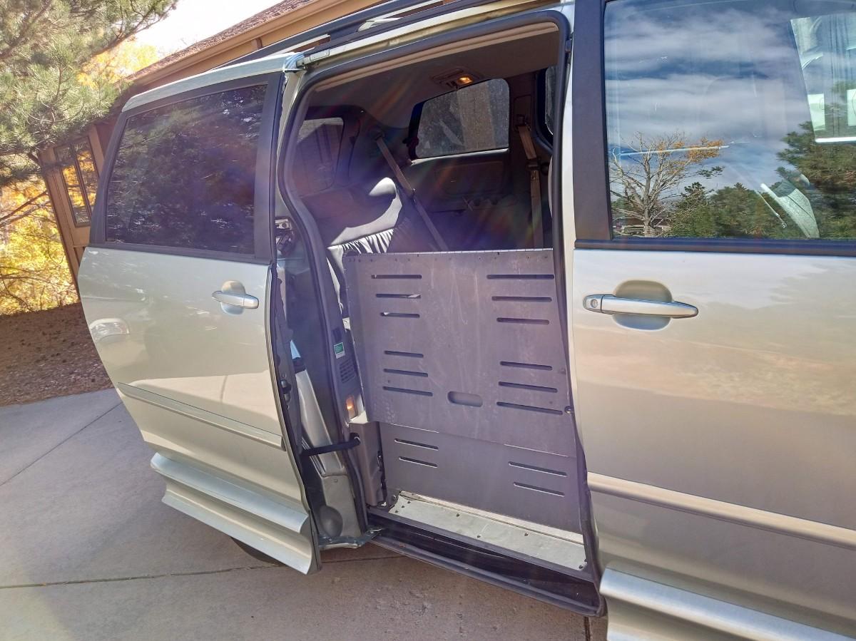 THIS TOYOTA MOBILITY VAN IS EQUIPPED WITH AN AUTOMATIC RAMP THAT LOWERS AND RAISES WITH A PUSH OF A BUTTON.