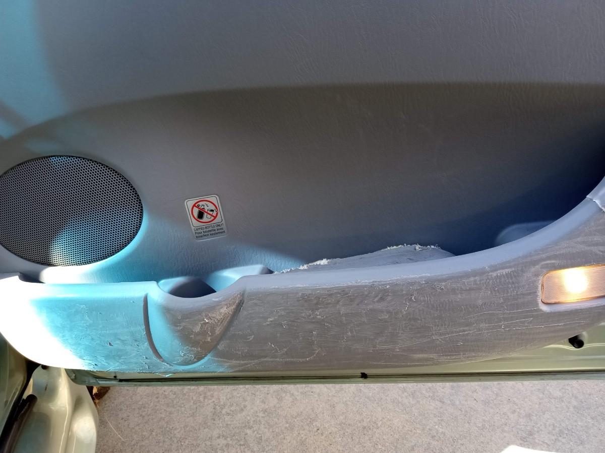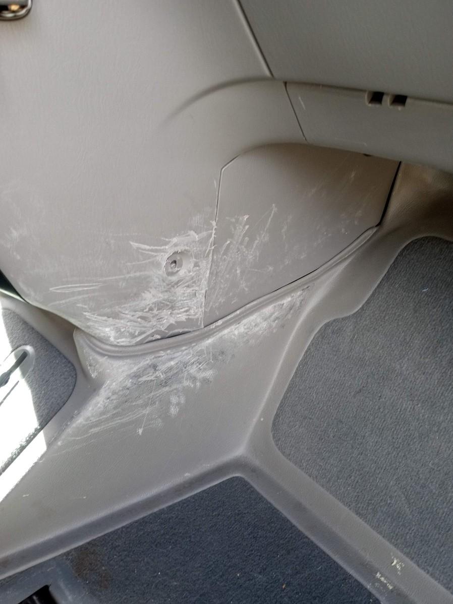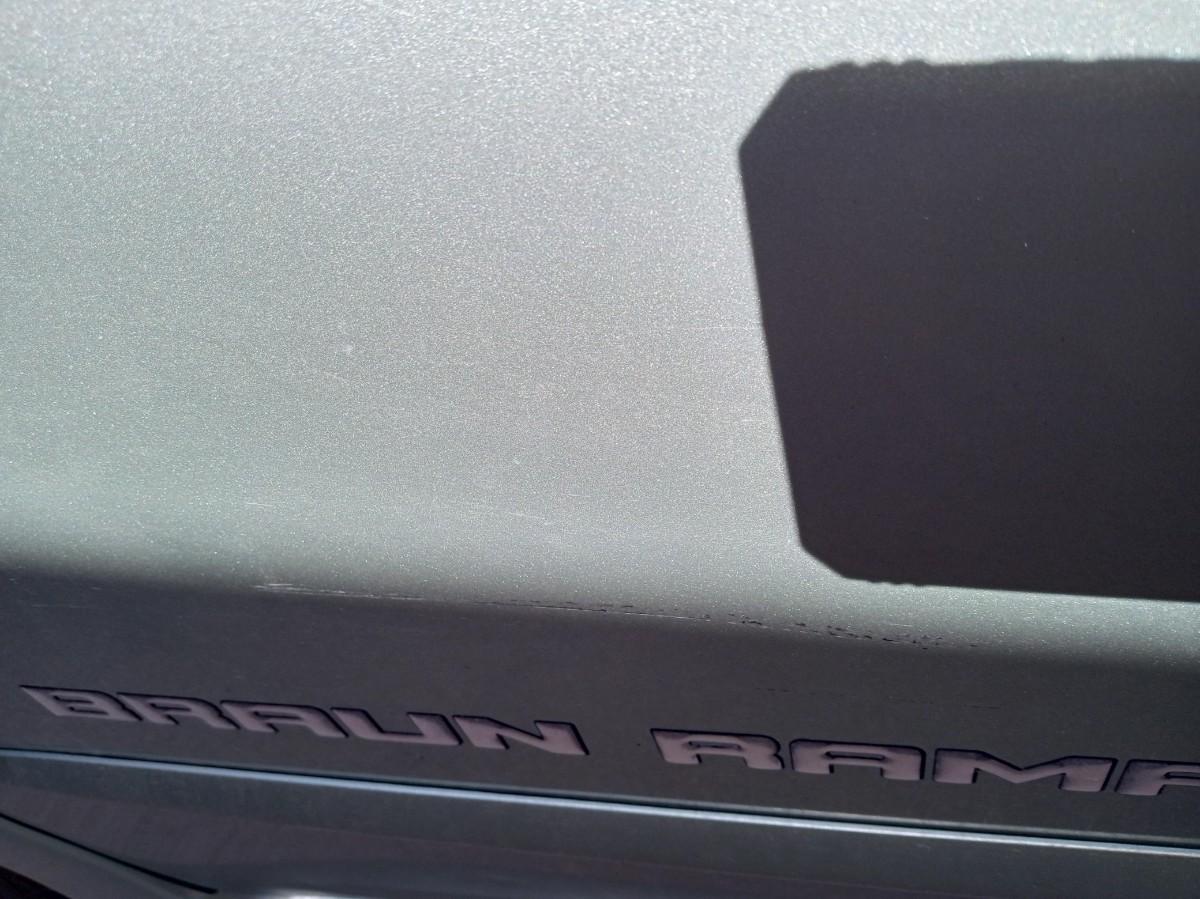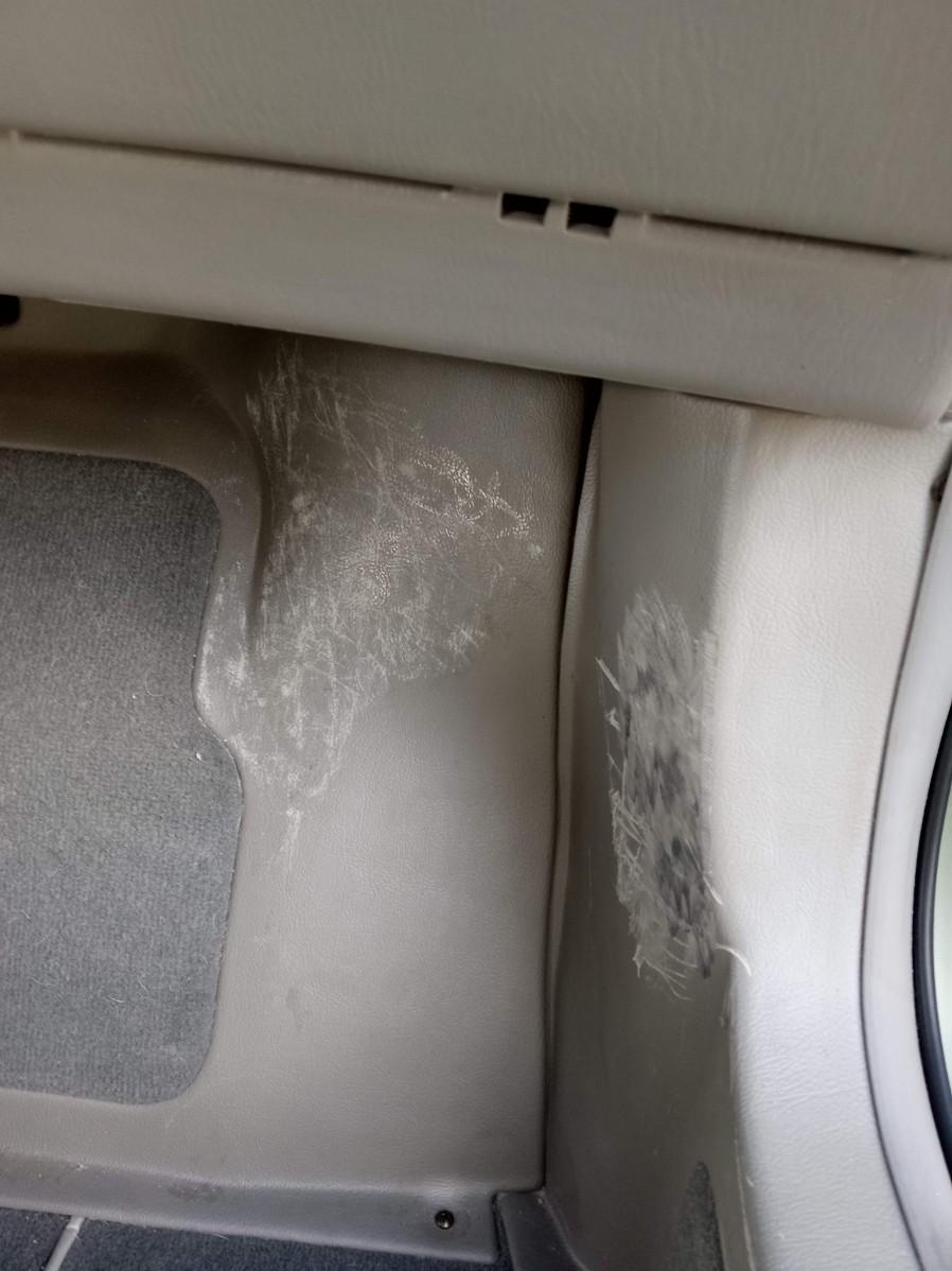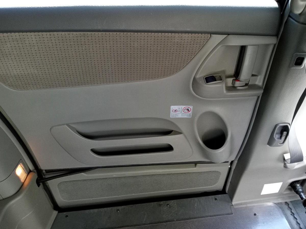 THE INTERIOR ON THE PASSENGER SIDE HAS CONSIDERABLE DAMAGE (SEE PICS) FROM A WHEELCHAIR GETTING IN POSITION. THERE ARE ALSO SOME LIGHT SCRATCHES AND A FEW DINGS ON THE EXTERIOR