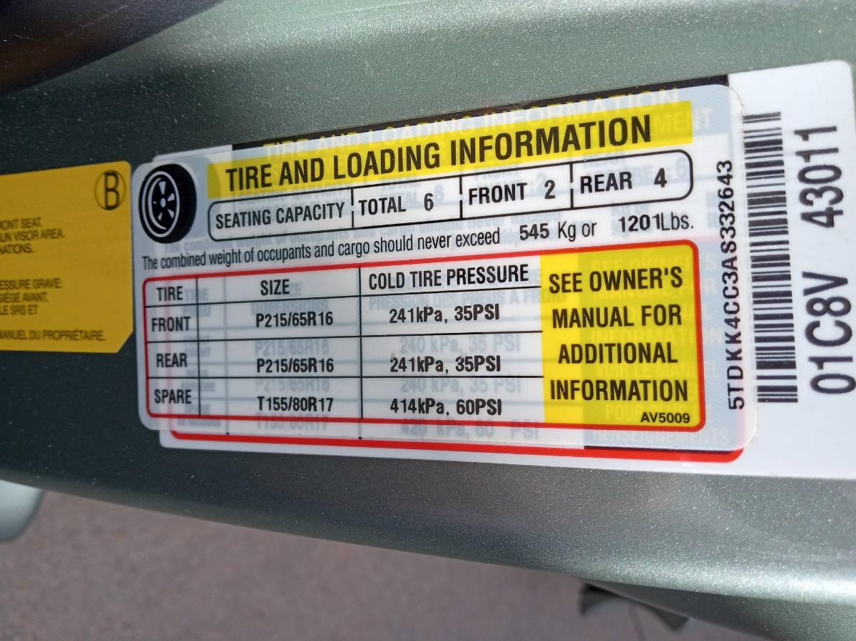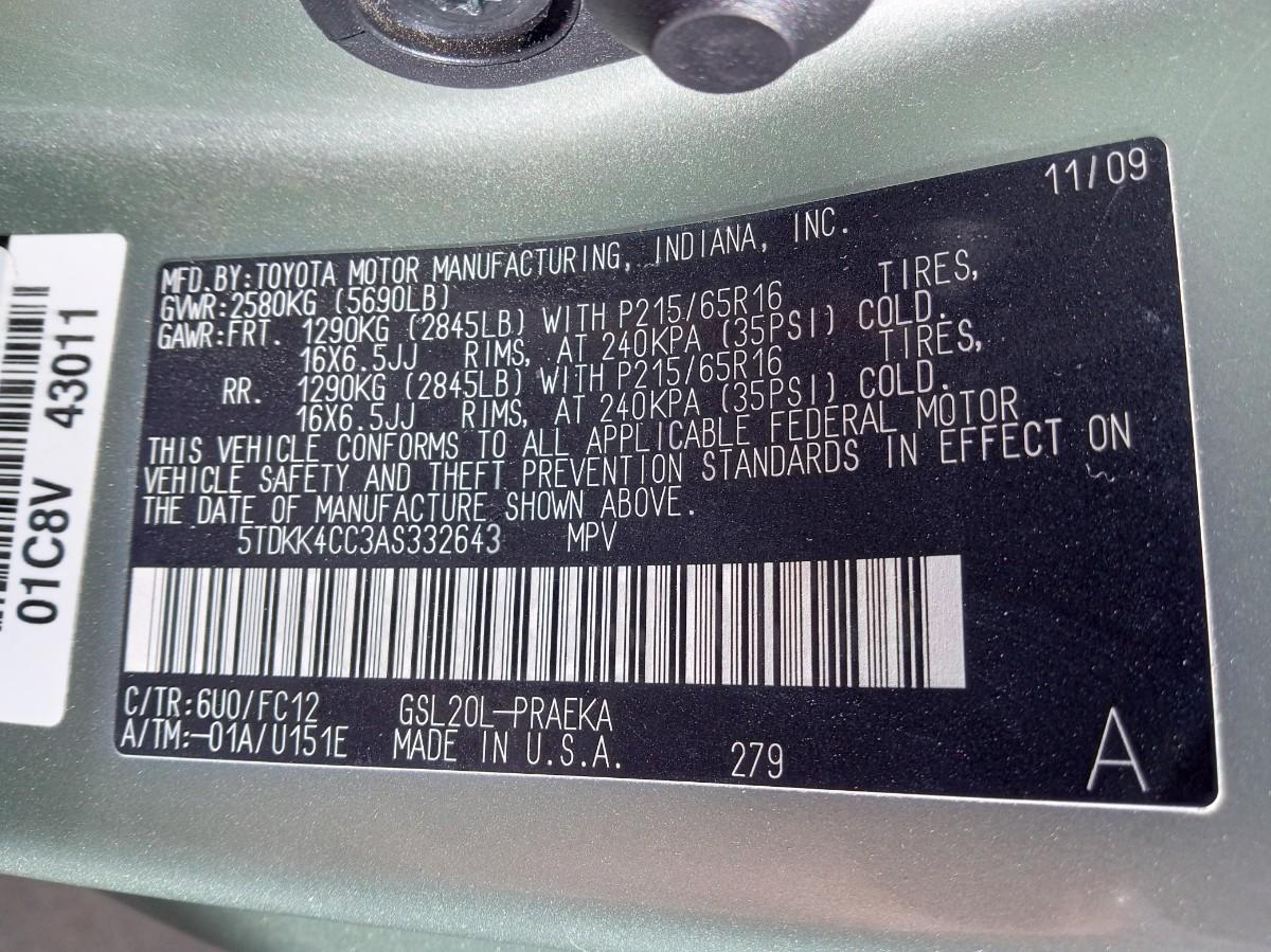 VIN # 5TDKK4CC3AS332643