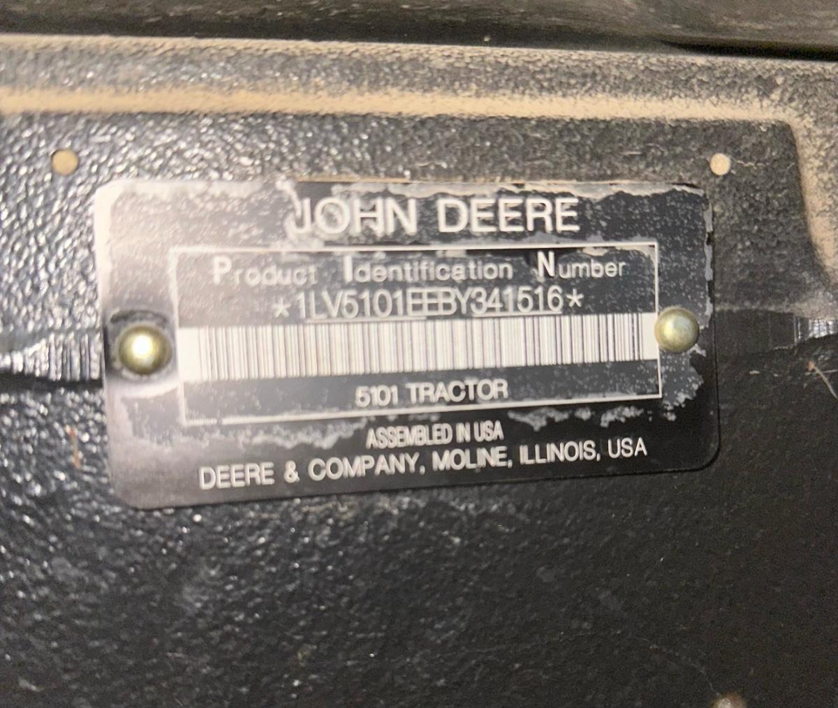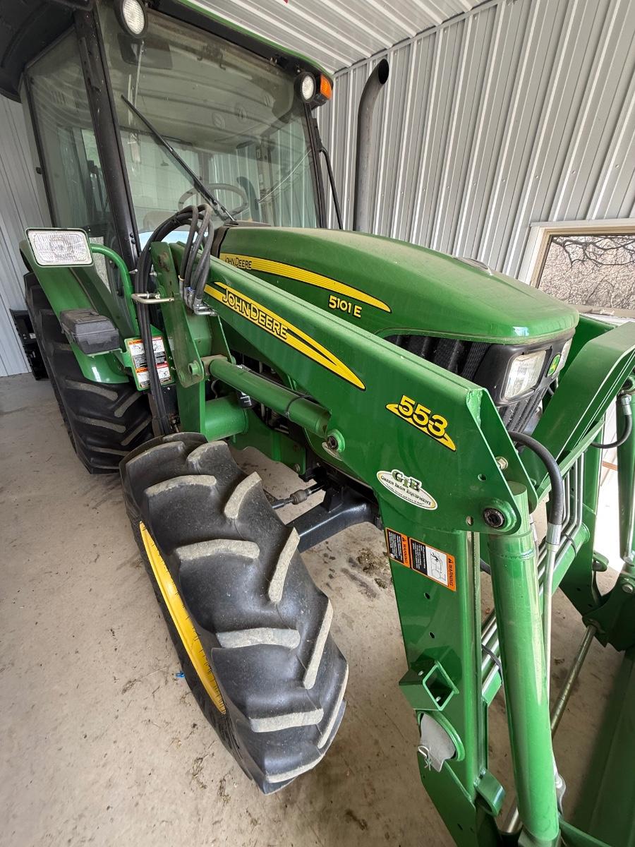 2011 John Deere 5101E with all accessories pictured. More photos are coming of the form attachments. Everything works and runs as it should. Item is bought as is where is.