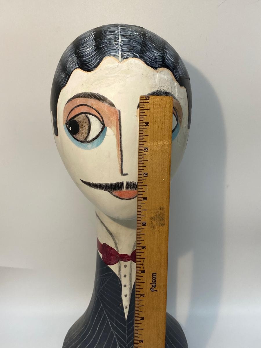 2011 Silvestri! by DEMDACO "Dapper Dan" bust. Looks a bit like Gomez Addams. In fair condition, kinda looks smudgy dirty, looks like he may have been damaged and repaired/repainted. It looks hand made but I did find him in google image search. About 18" tall. See photos regarding condition.