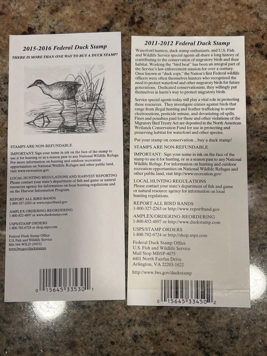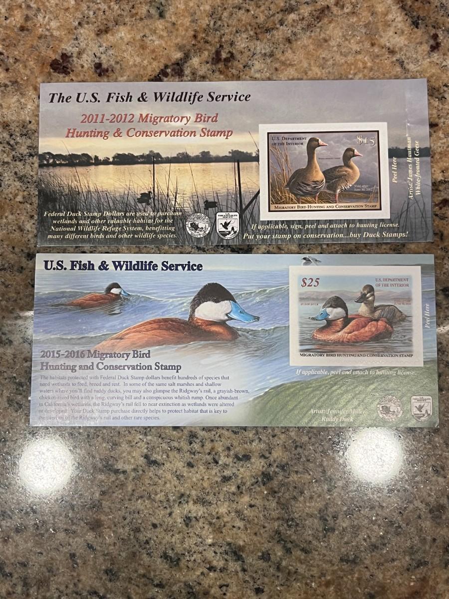 2011-2012 & 2015-2016 US FISH & WILDLIFE MIGRATORY BIRD HUNTING AND CONSERVATION STAMPS