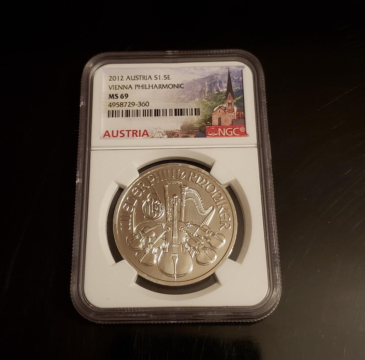2012 Austria S 1 .5 E Vienna  Philharmonic 1 Oz silver coin MS 69