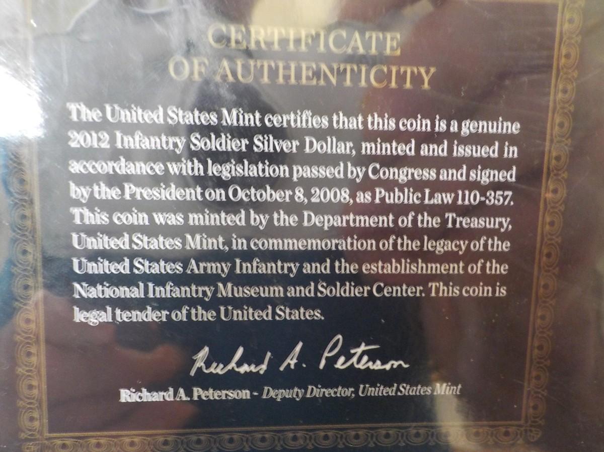 2012 Infantry Solder Silver Dollar display.est. $20 to $50.
