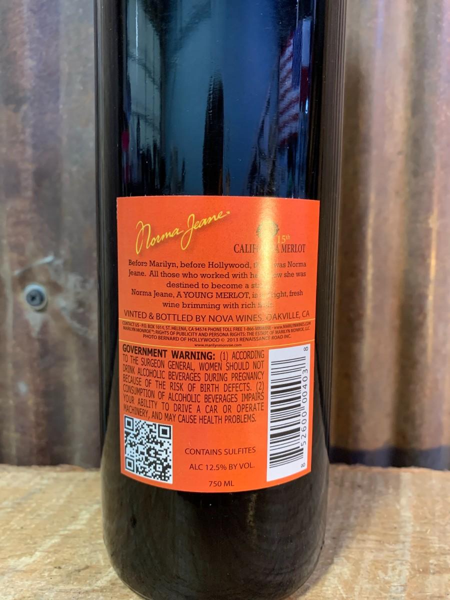 2012 15th Vintage of a Young California Merlot, Norma Jean (Marilyn Monroe) 775ml Wine Another Great Vintage- Full and ready for your Collection- This is a $120 Bottle of wine
