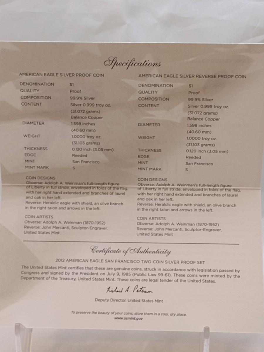 2012 United States Mint American Eagle San Francisco Two-Coin Silver Proof Set (#32)
