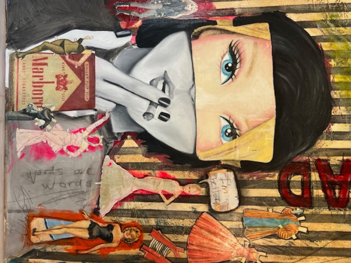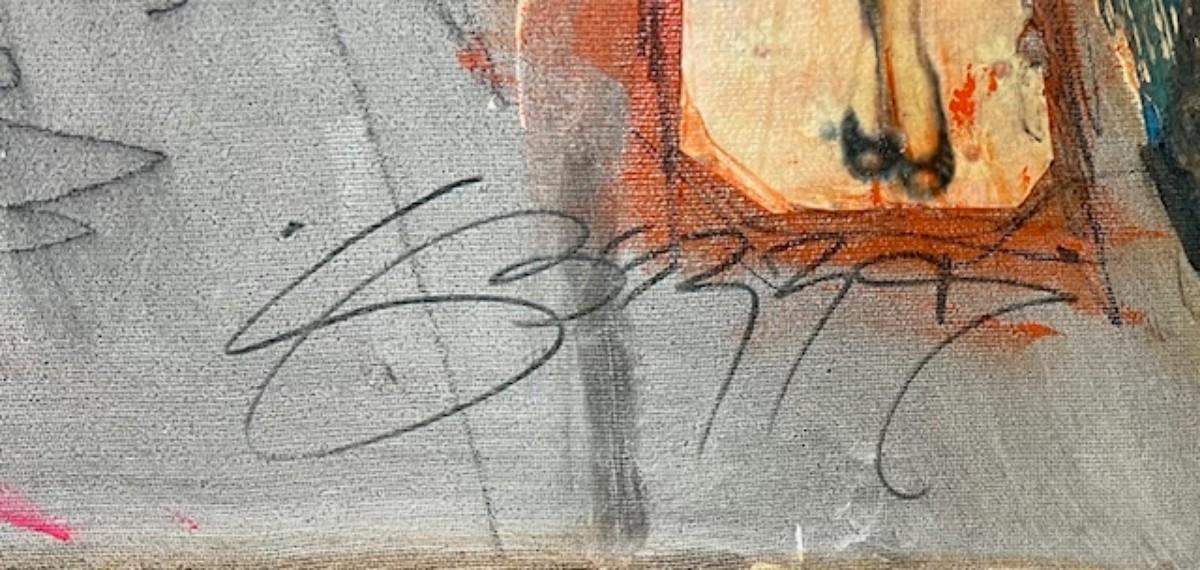 Acrylic on canvas. Also Sharpie signed on verso. Original artwork. Sarasota area artist. Measurement: 48"H x 28"W.