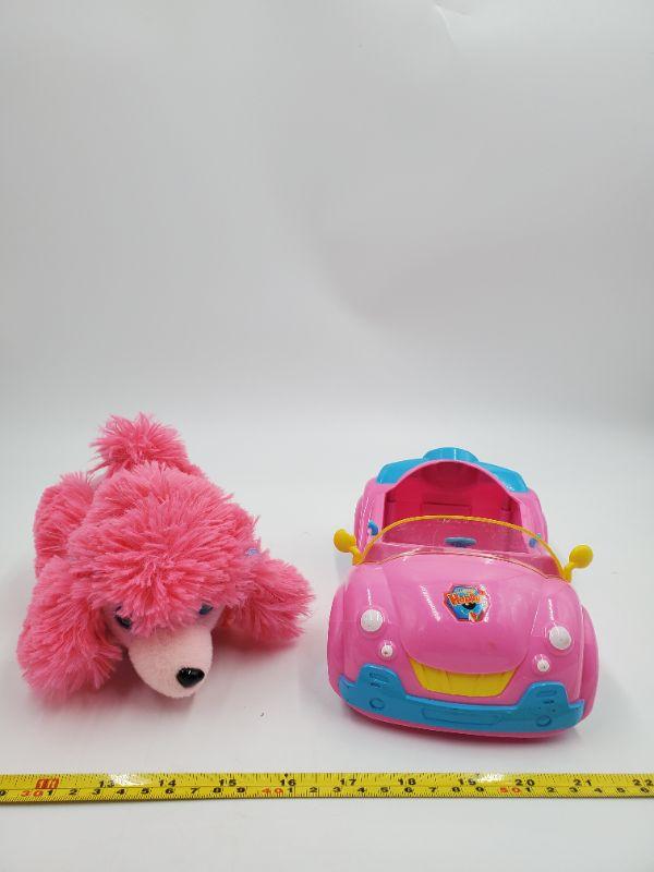 Includes pink puppy and car...puppy has not been tested, pre loved.