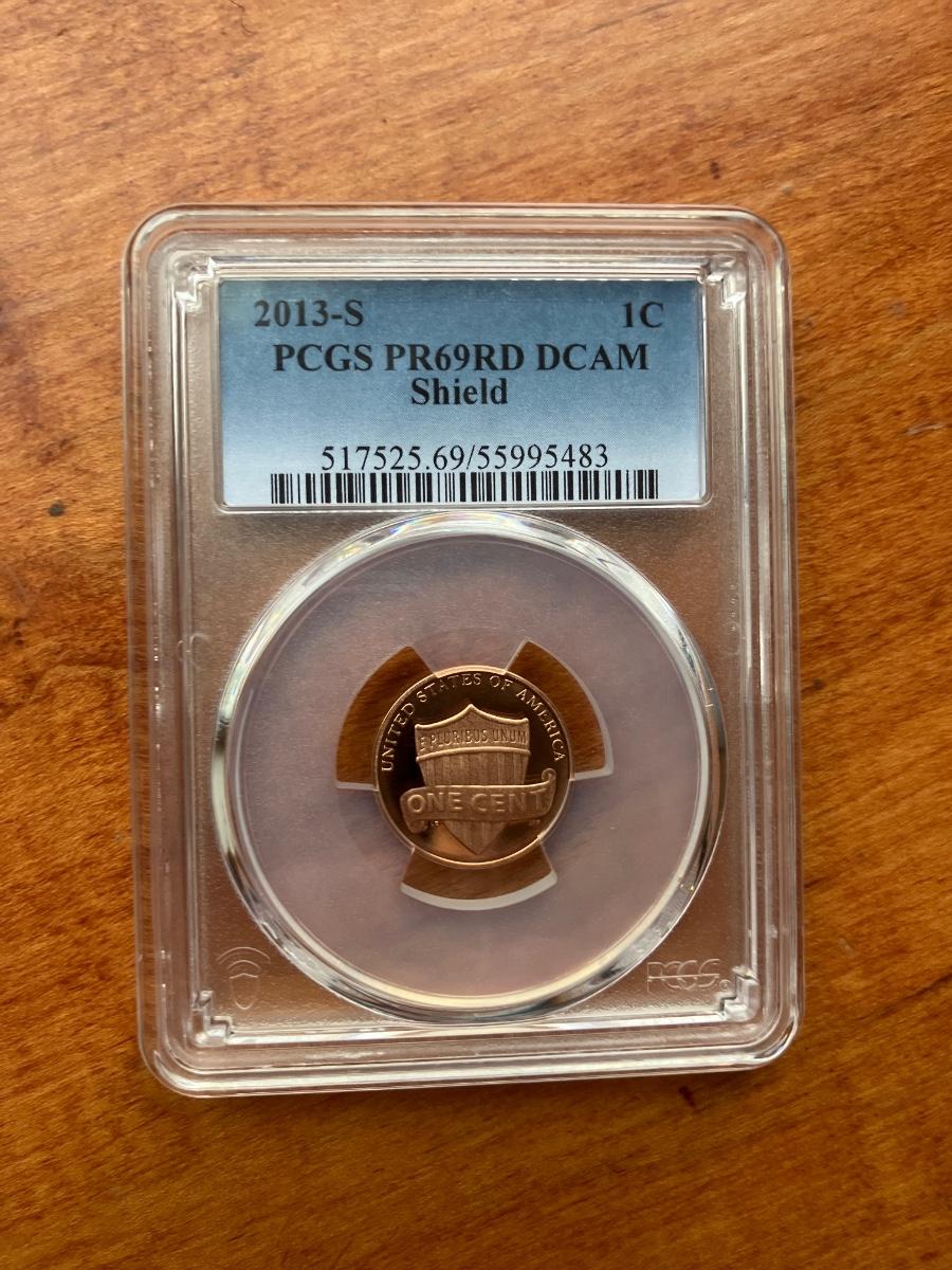 The 2013-S Shield proof cent is a one-year subtype and has always been popular as the inaugural release of the final Lincoln cent design. While mintage was high (~1.3 million), top-grade Deep Cameo examples with full red color have developed a strong collector base in recent years.