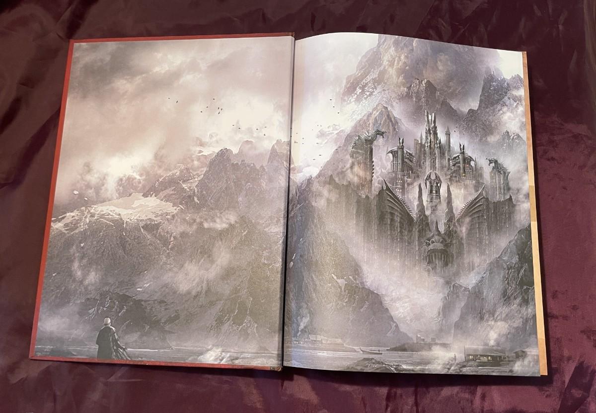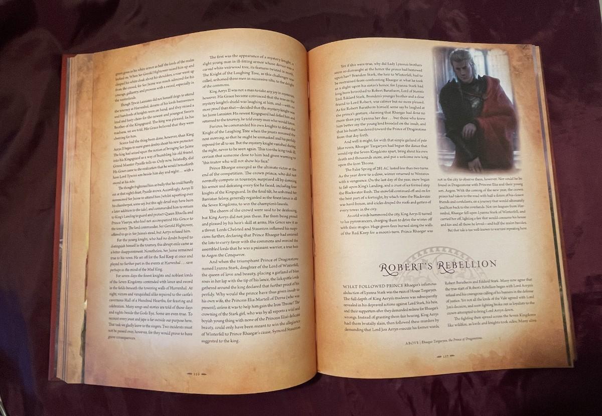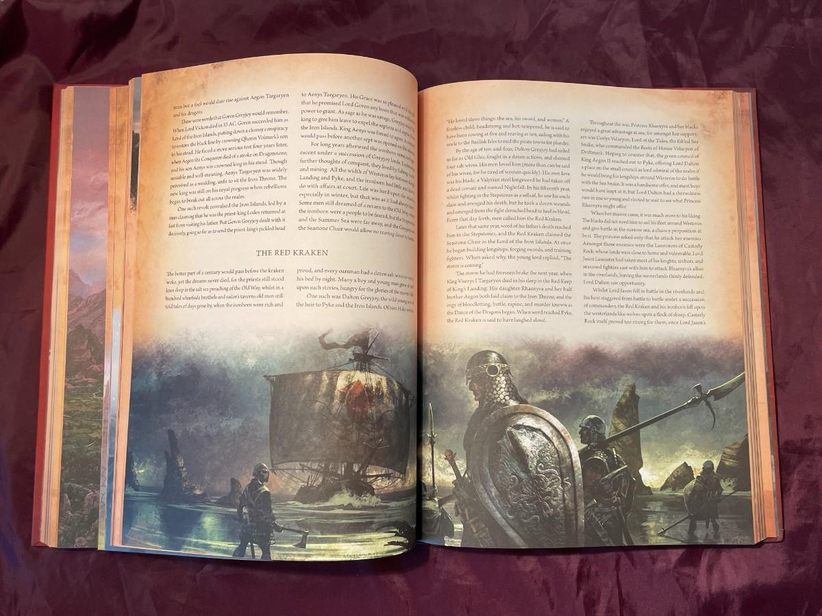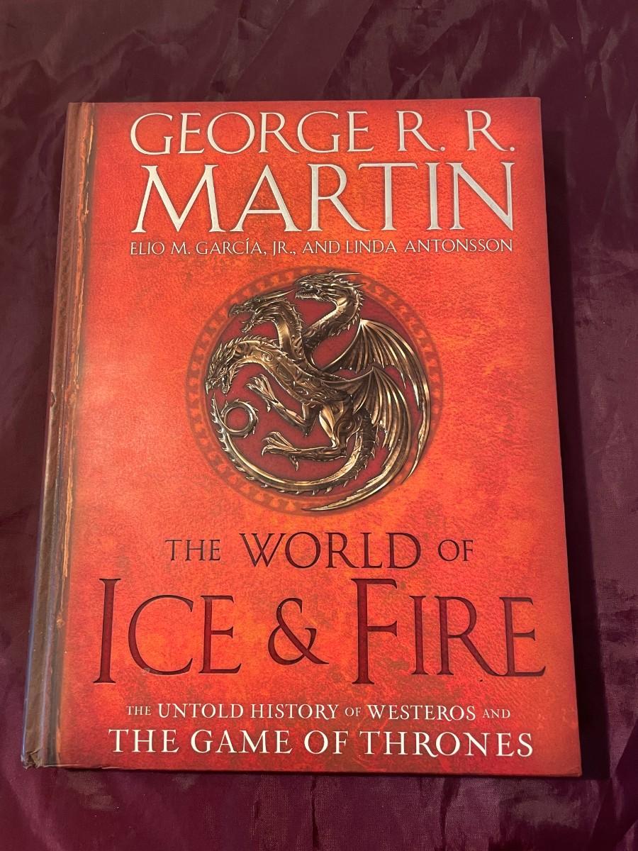 The actual title of this book is The World of Ice and Fire the Untold History of Westeros and The Game of Thrones. It is marked as a first edition and has a padded cover. It is about 12 inches by 9 inches by 1.25 inches (it is large) and in excellent condition.